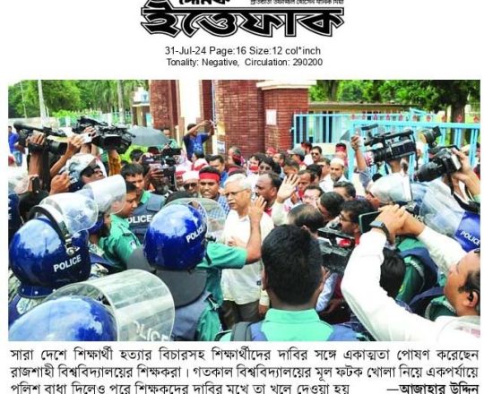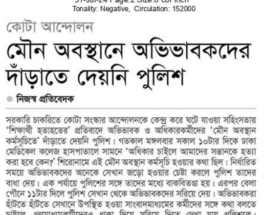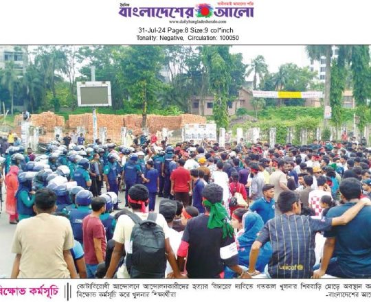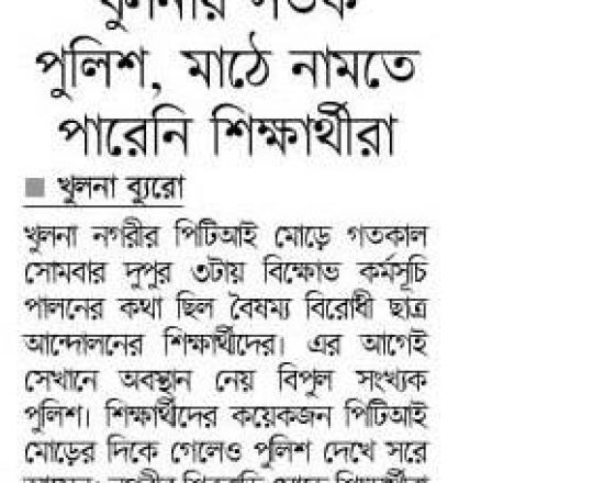 ভোরের পাতা, ৩১ জুলাই ২০২৪, খুলনায় সতর্ক পুলিশ, মাঠে নামতে পারেনি শিক্ষার্থীরা