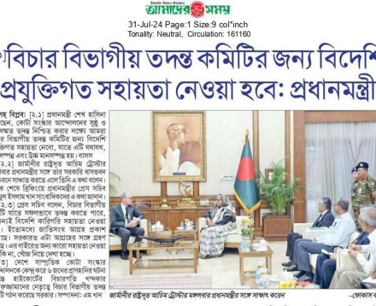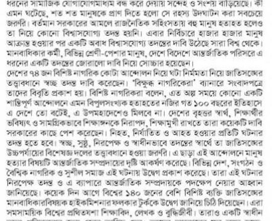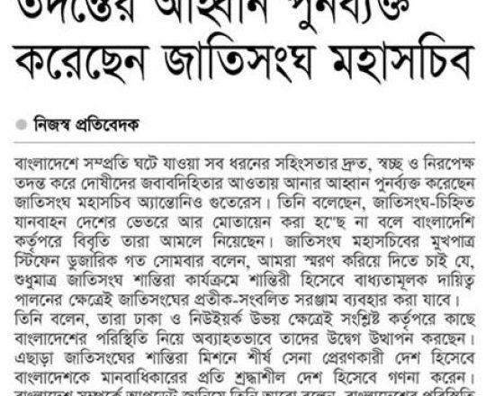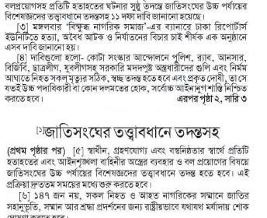 ভোরের পাতা, ৩১ জুলাই ২০২৪, জাতিসংঘের তত্ত্বাবধানে প্রতিটি ঘটনার সুষ্ঠু তদন্ত দাবি