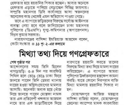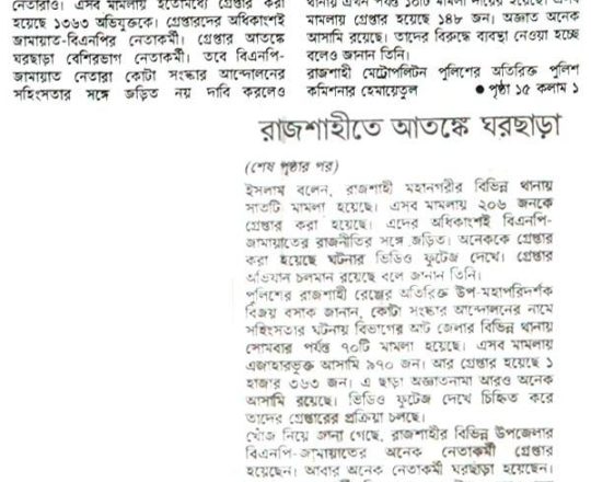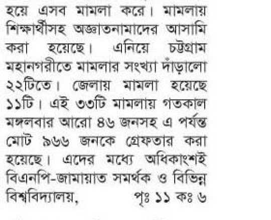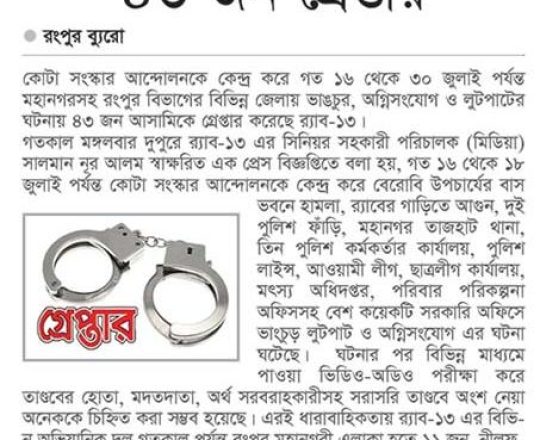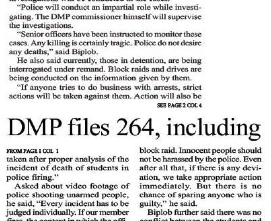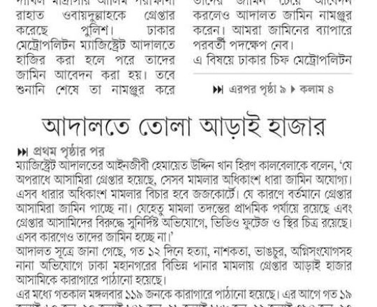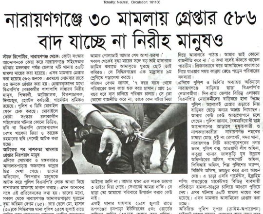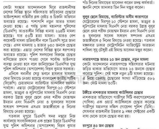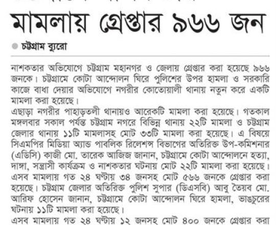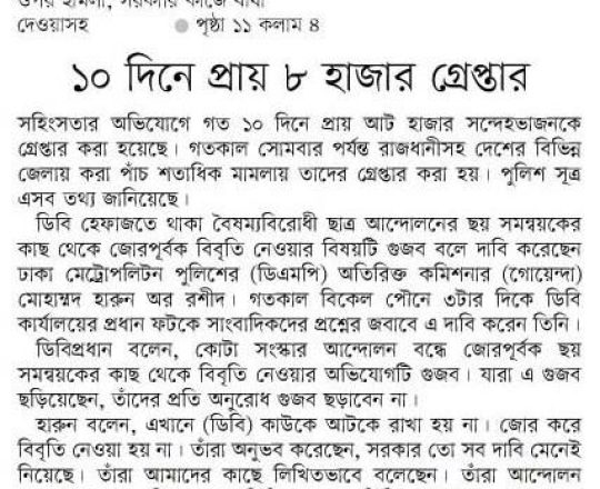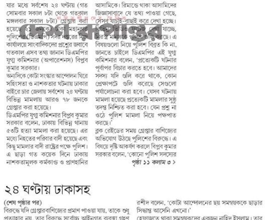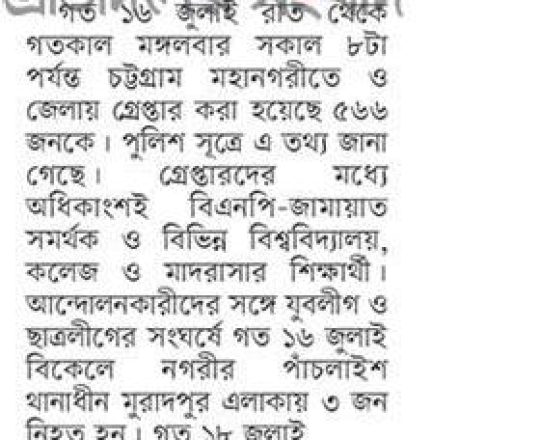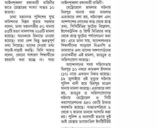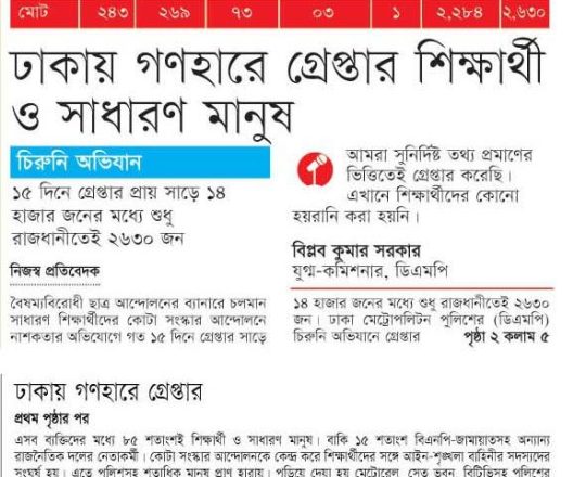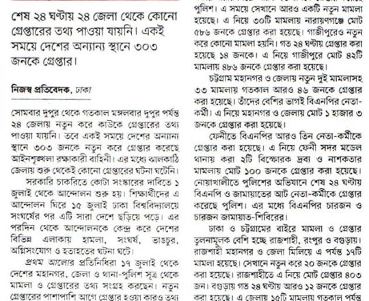 প্রথম আলো,৩১ জুলাই,ঢাকায় গ্রেপ্তার ৮৭ শতাংশের রাজনৈতিক পরিচয় নেই