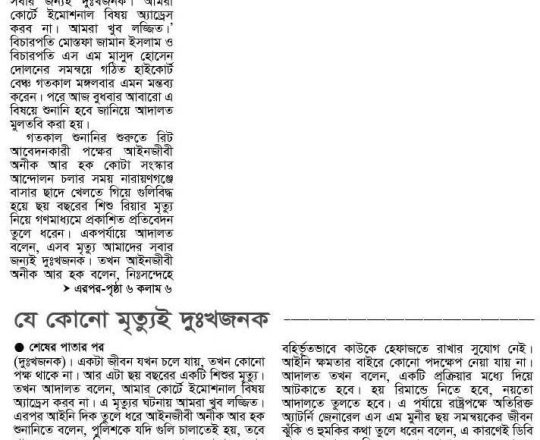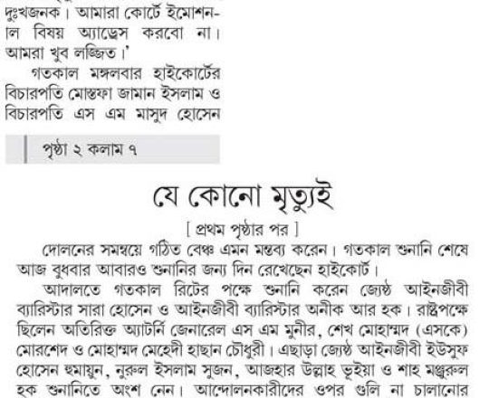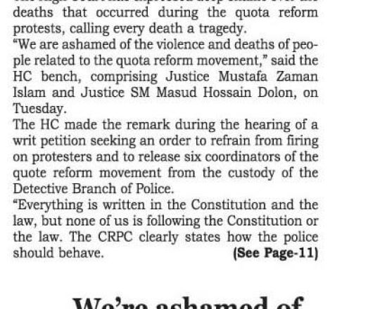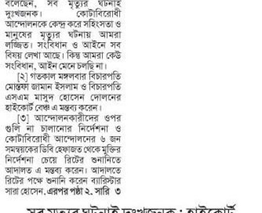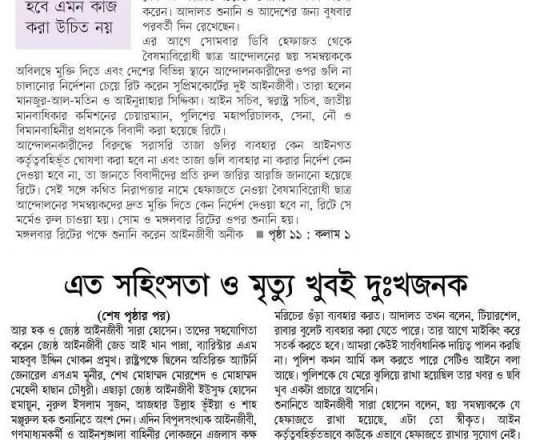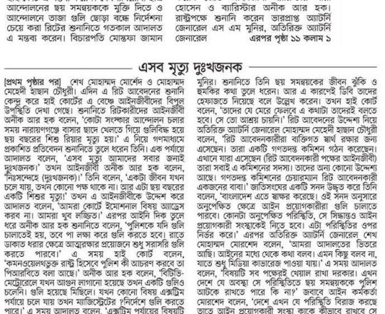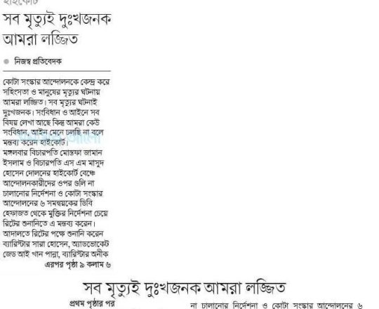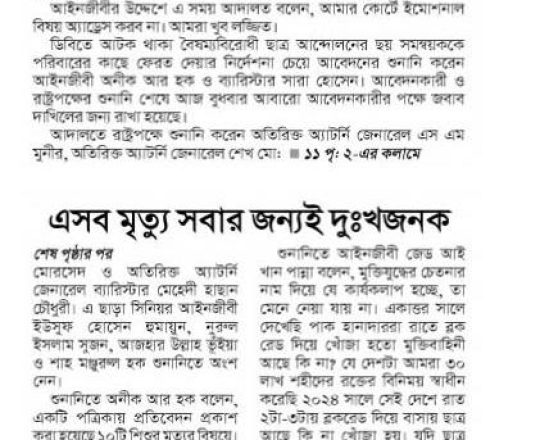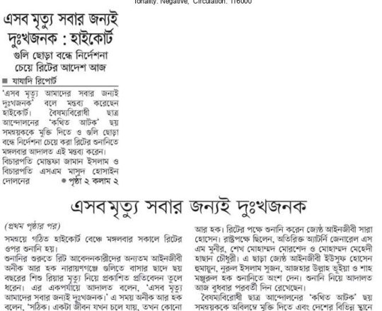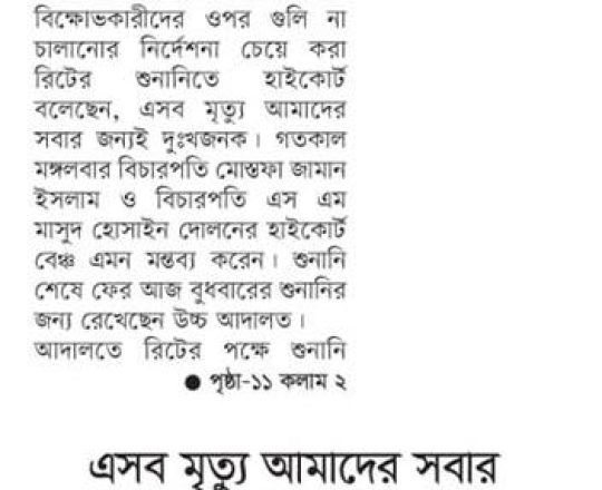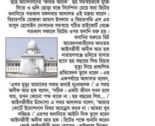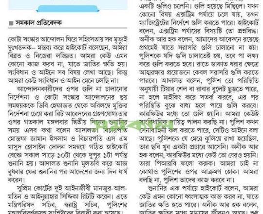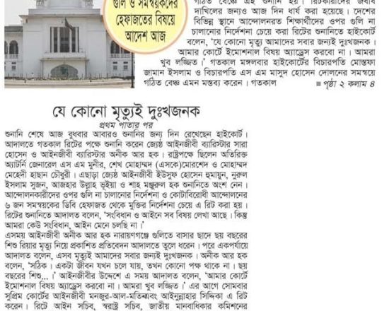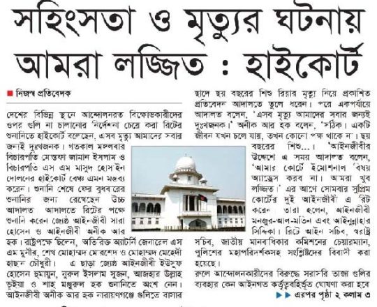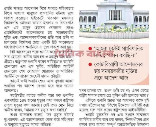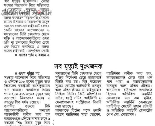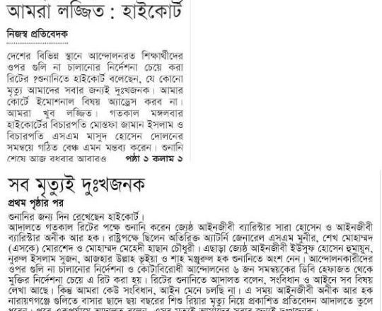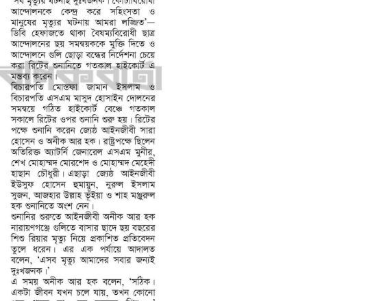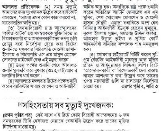 ভোরের আকাশ, ৩১ জুলাই ২০২৪, এসব মৃত্যু সবার জন্যই দুঃখজনক-হাইকোর্ট