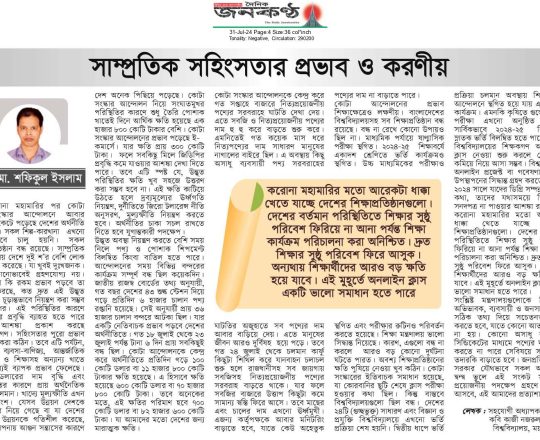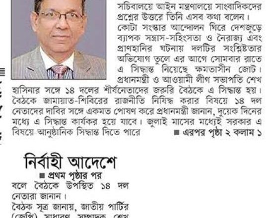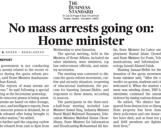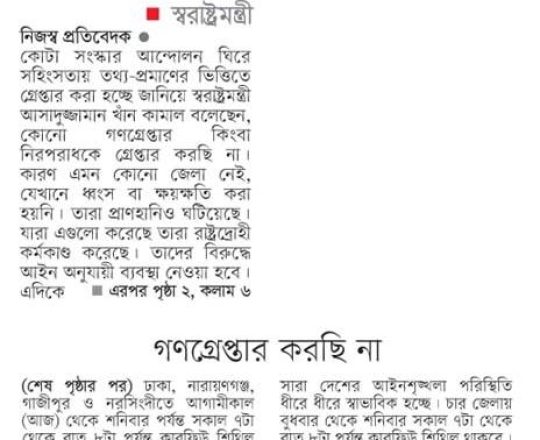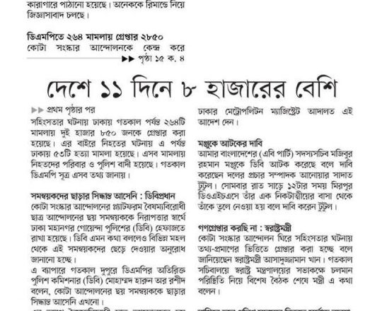 ভোরের পাতা, ৩১ জুলাই ২০২৪, সহিংসতায় ১৫০ জন নিহত হয়েছেন -স্বরাষ্ট্রমন্ত্রী