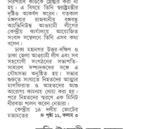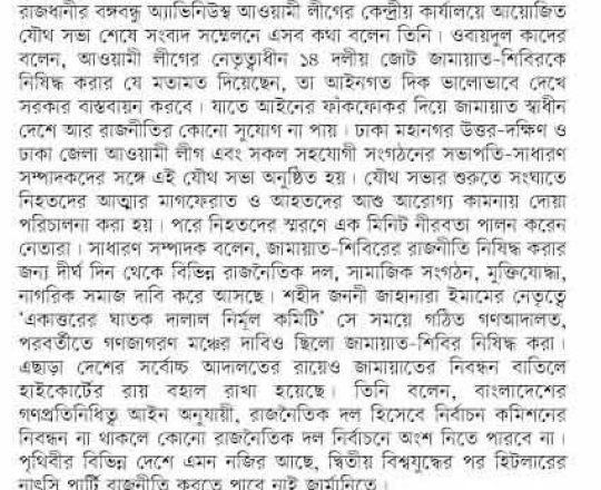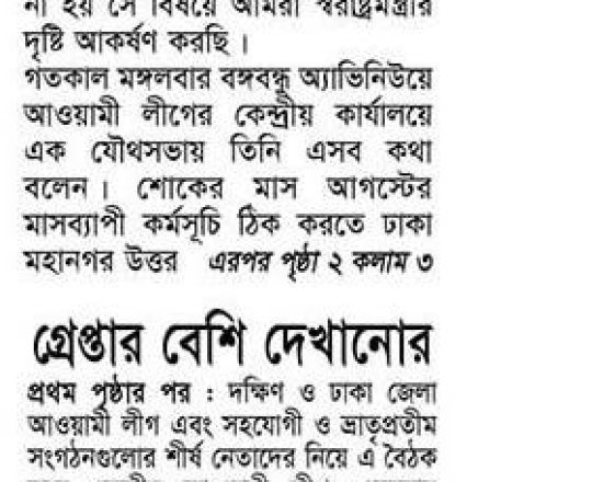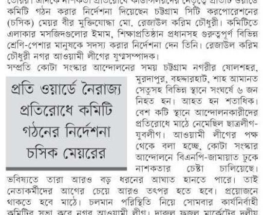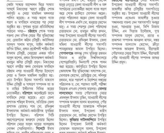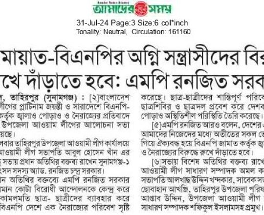 ভোরের পাতা, ৩১ জুলাই ২০২৪, আওয়ামী লীগের যৌথসভা আজ