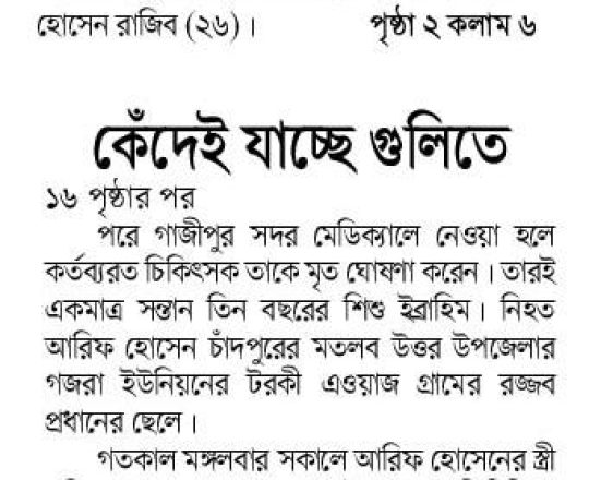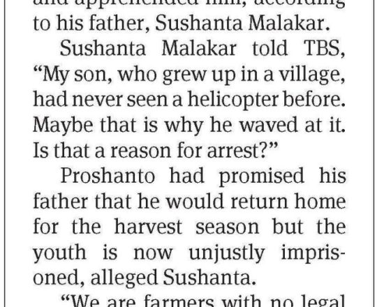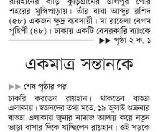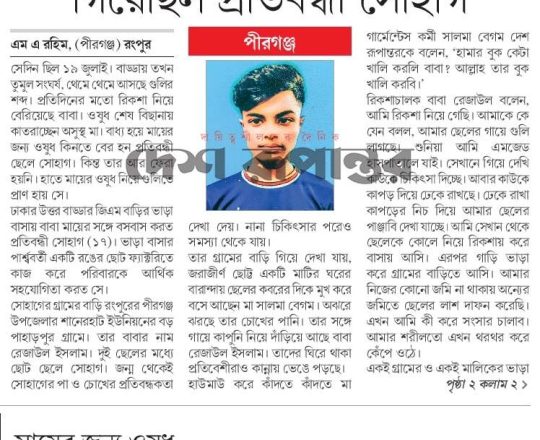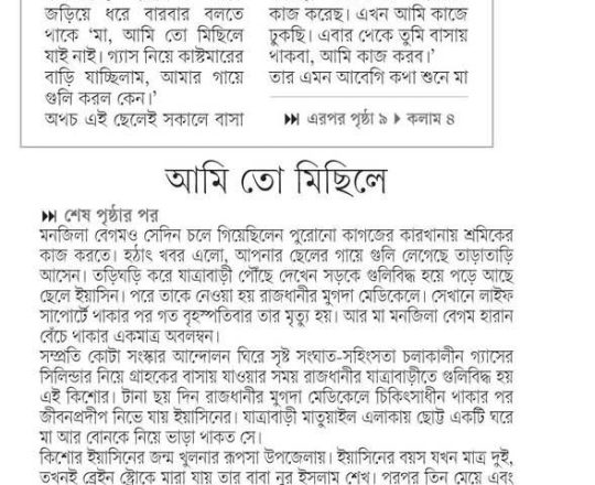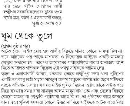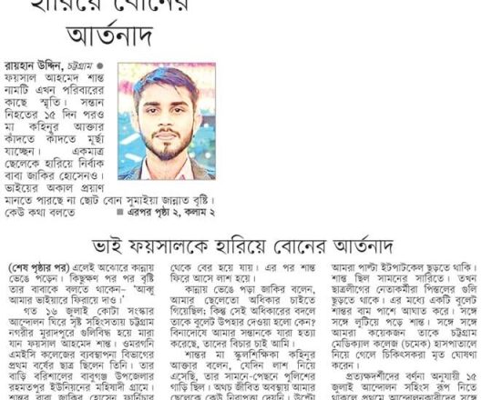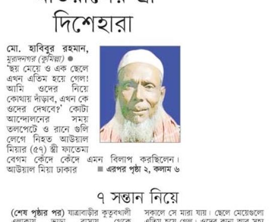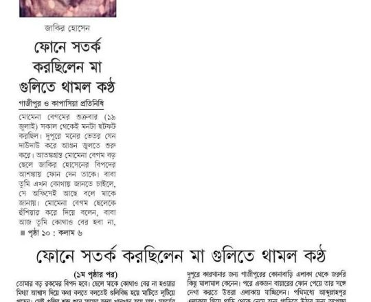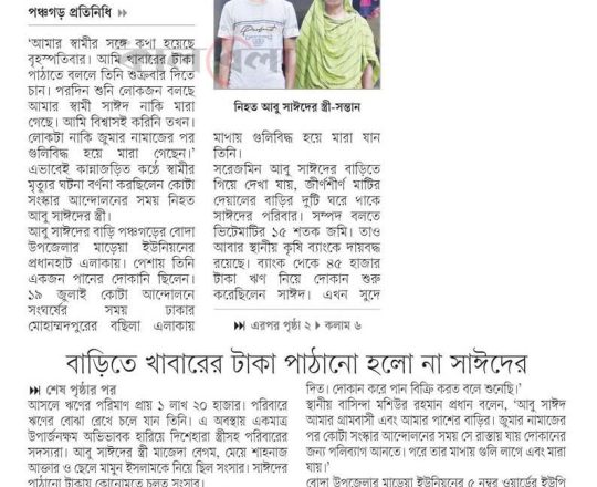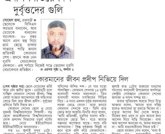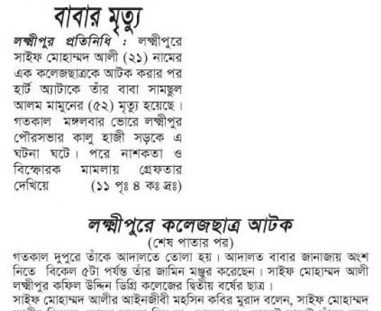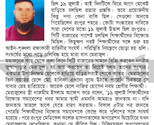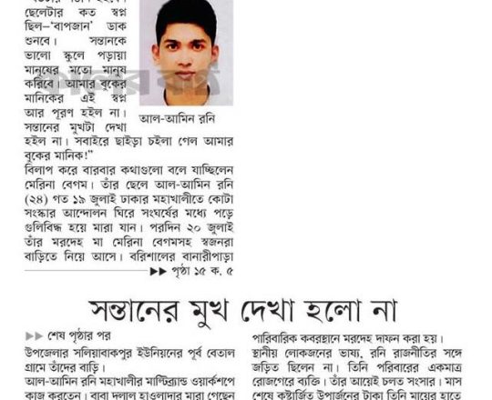 প্রথম আলো,৩১ জুলাইকোটিন মাত্মার আন্দোলন লক্ষ্মীপুরে কলেজপড়ুয়া ছেলেকে গ্রেপ্তারের পর বাবার মৃত্যু