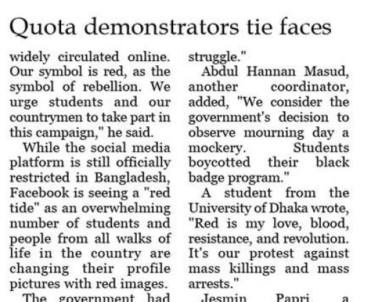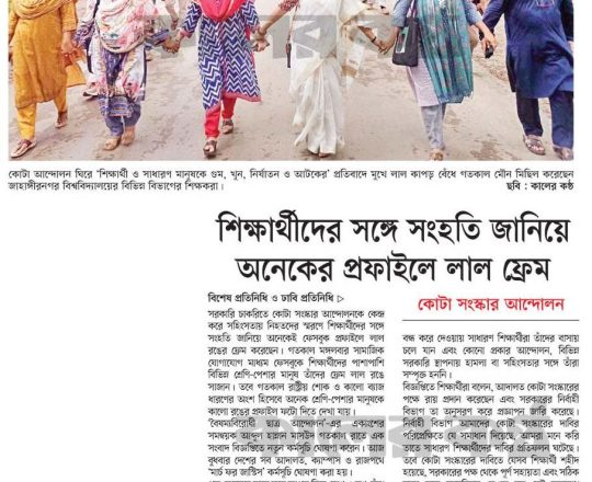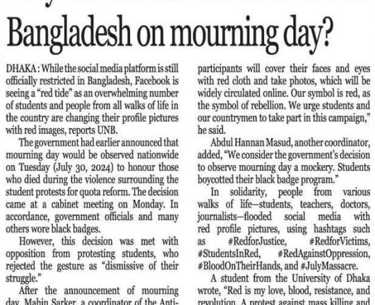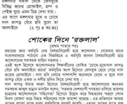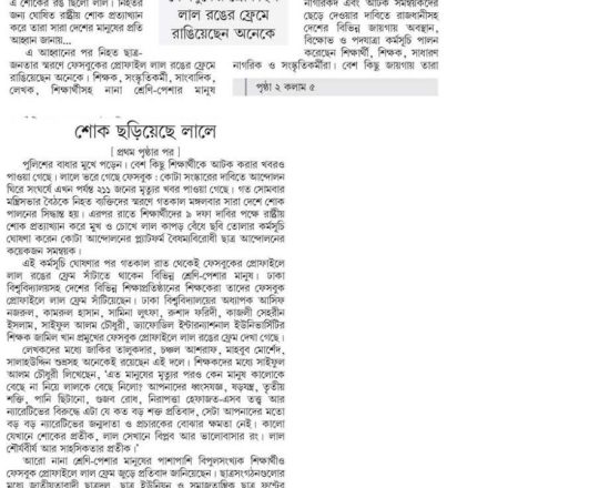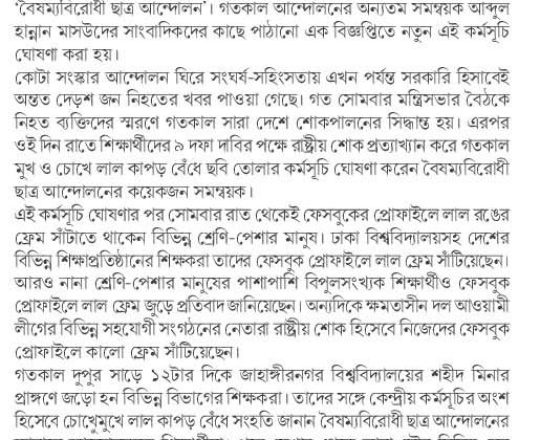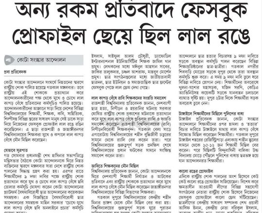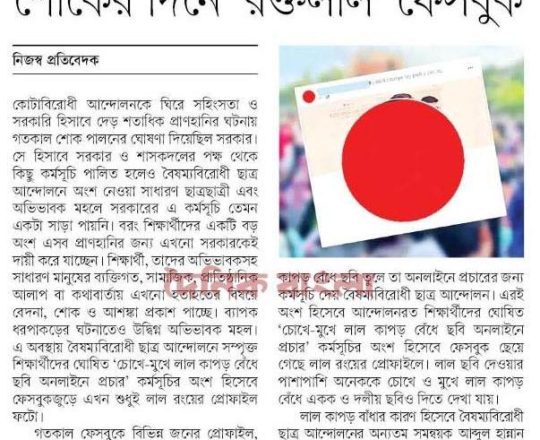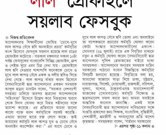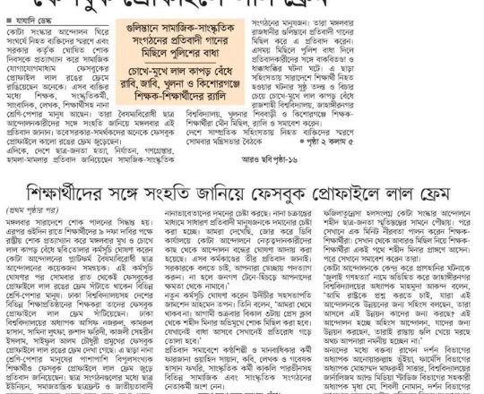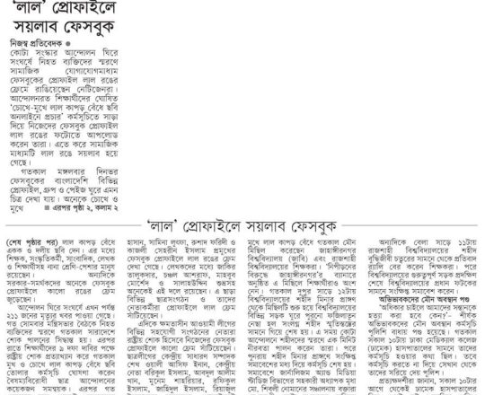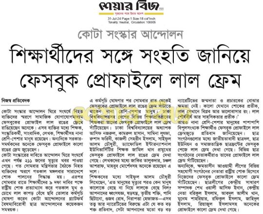 প্রথম আলো,৩১ জুলাই,শিক্ষার্থীদের সঙ্গে সংহতি জানিয়ে অনেকের ফেসবুক প্রোফাইলে লাল ফ্রেম