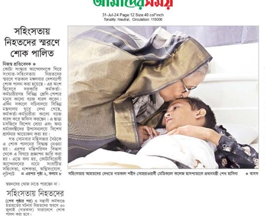ভোরের পাতা, ৩১ জুলাই ২০২৪, সহিংসতা নিহতদের স্মরণে আজ রাষ্ট্রীয় শোক