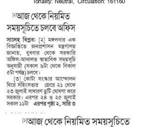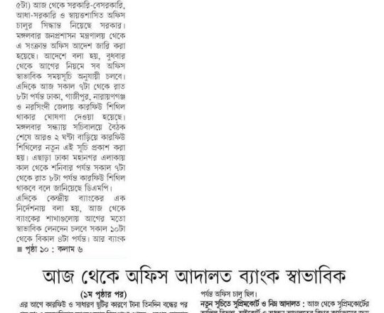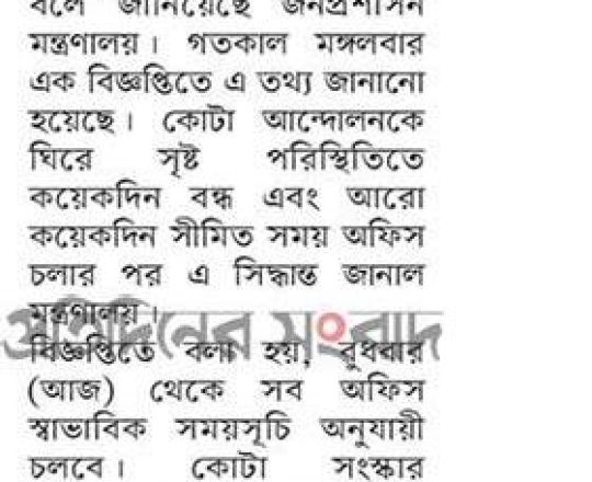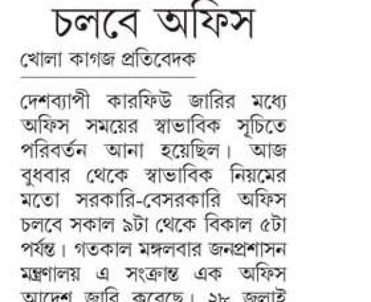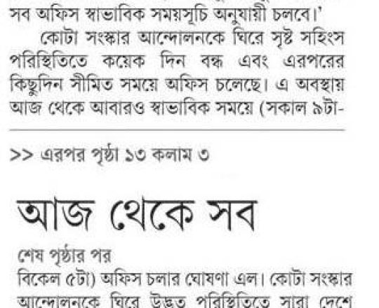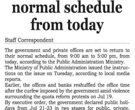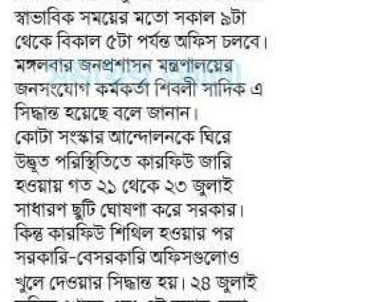 আলোকিত বাংলাদেশ, ৩১ জুলাই ২০২৪, আজ থেকে স্বাভাবিক সূচিতে চলবে অফিস