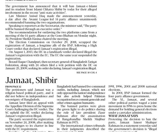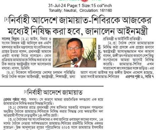 আলোকিত বাংলাদেশ, ৩১ জুলাই ২০২৪, আজ নিষিদ্ধ হচ্ছে জামায়াত-শিবির