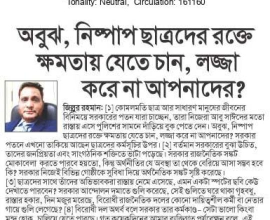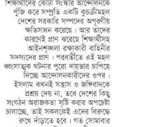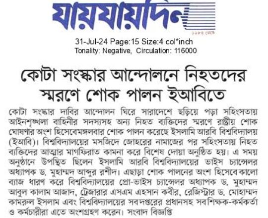 ভোরের পাতা, ৩১ জুলাই ২০২৪, 'জাতিকে নিয়ে মশকরা করবেন না'