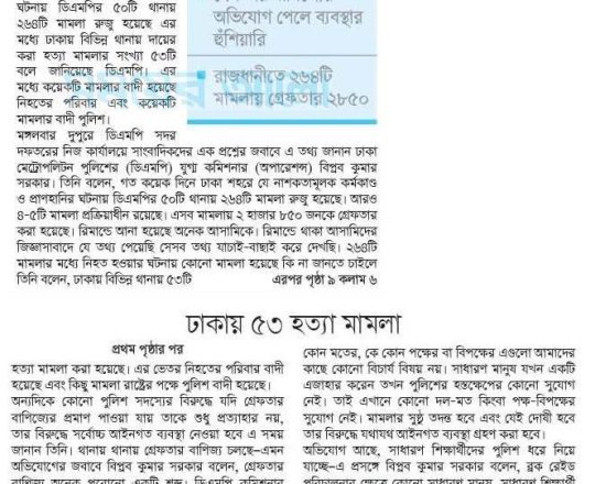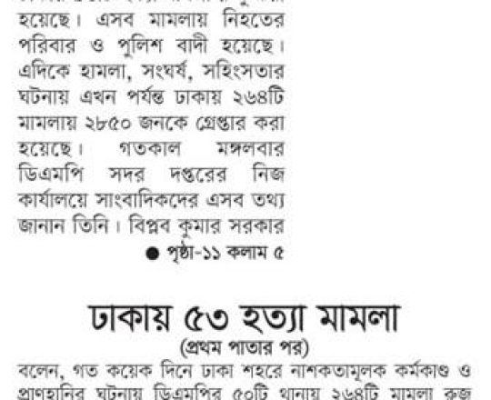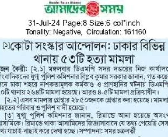 আলোকিত বাংলাদেশ, ৩১ জুলাই ২০২৪, ঢাকায় ২৬৪ মামলা ৫৩টি হত্যার
