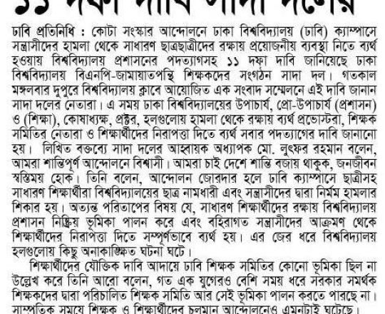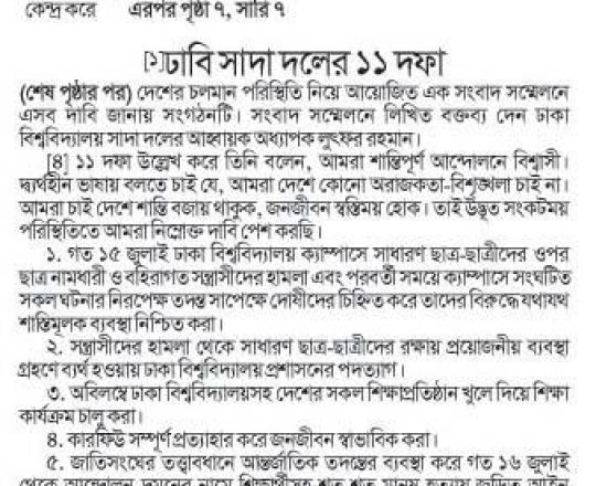 আজকালের খবর, ৩১ জুলাই ২০২৪, ঢাবি সাদা দলের ১১ দফা দাবি