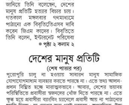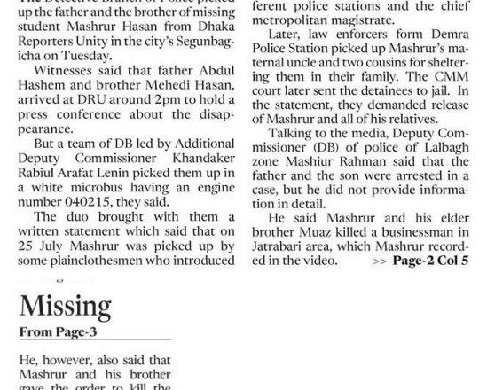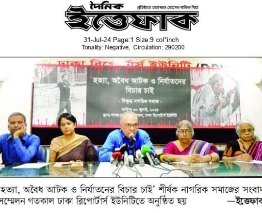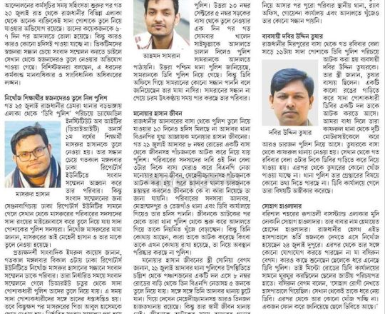 ভোরের পাতা, ৩১ জুলাই ২০২৪, আর একটিও গুম, অপহরণ, হত্যা নয়