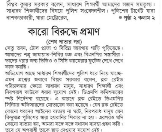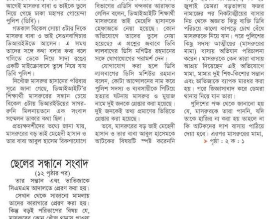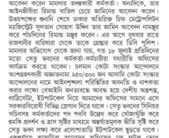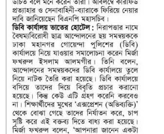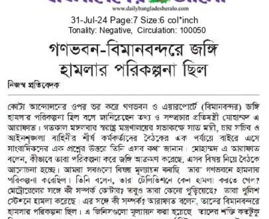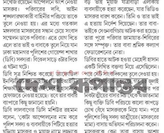 ভোরের পাতা, ৩১ জুলাই ২০২৪, 'ডিবি হেফাজতে জোরপূর্বক বিবৃতি নেওয়ার বিষয়টি গুজব'