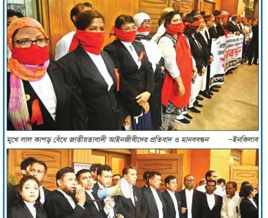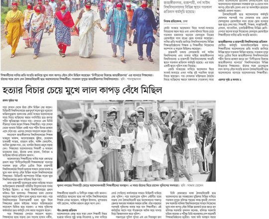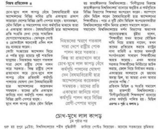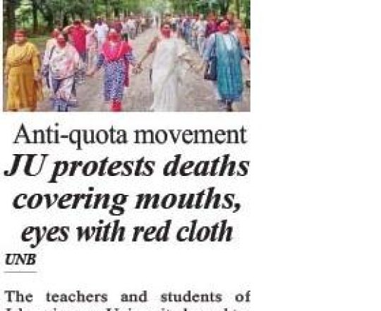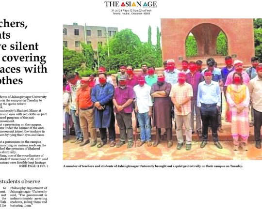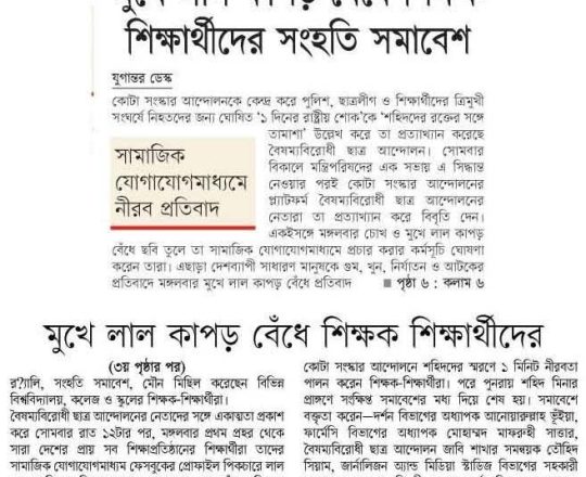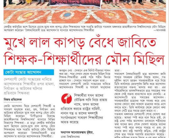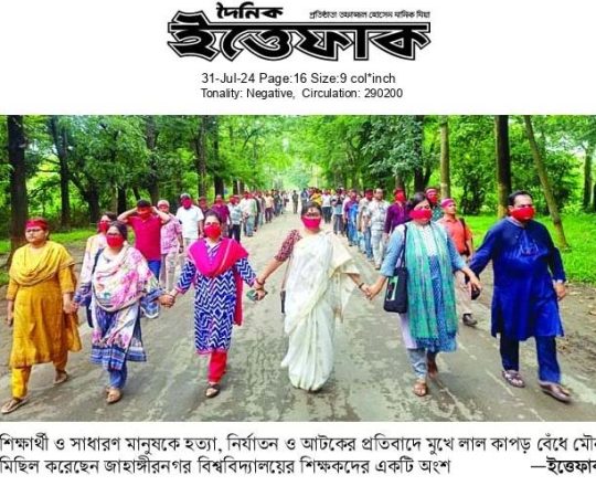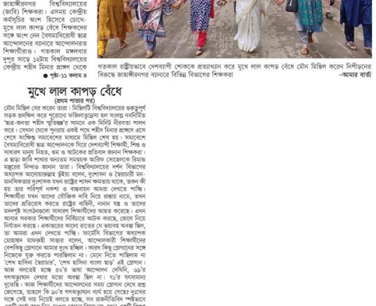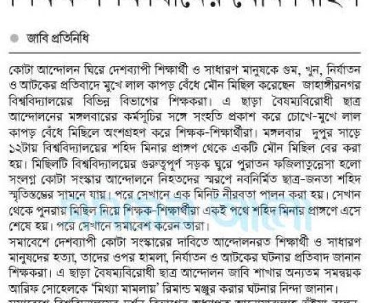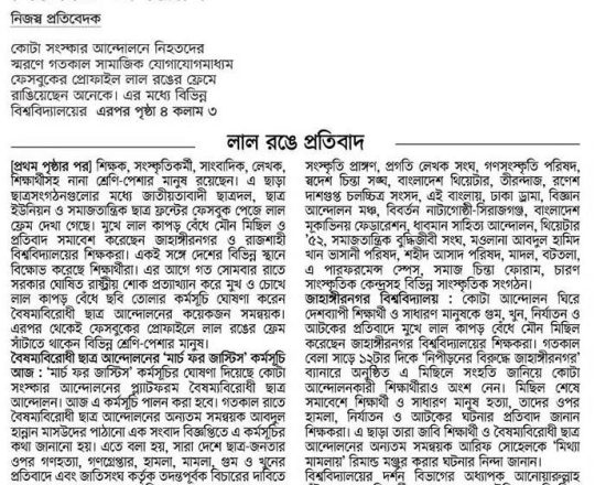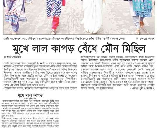 ভোরের আকাশ, ৩১ জুলাই ২০২৪, মুখে লাল কাপড় বেঁধে মৌন মিছিল