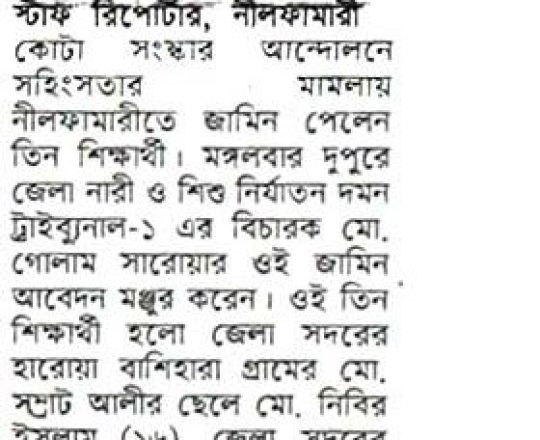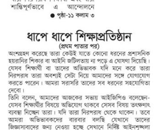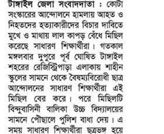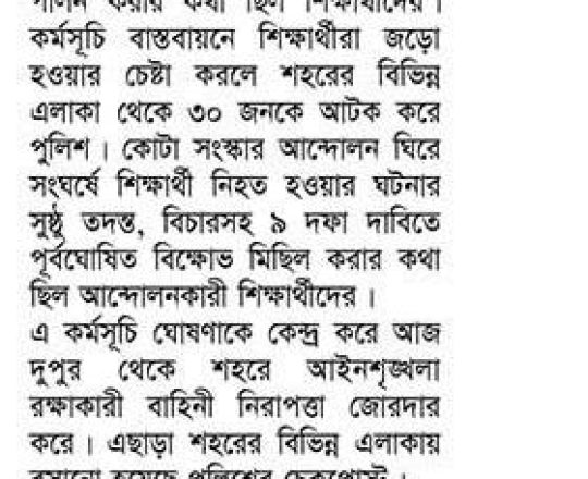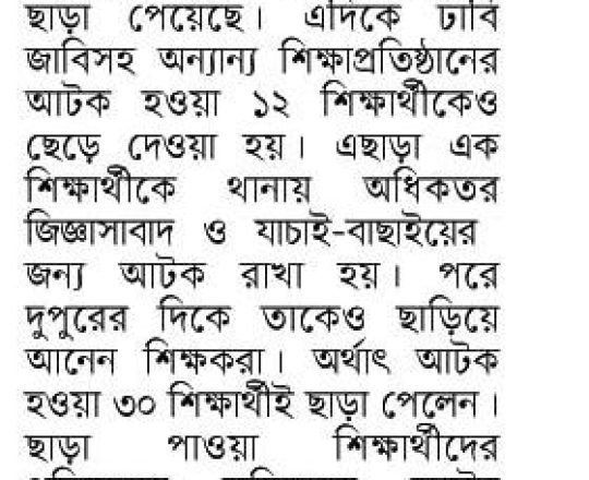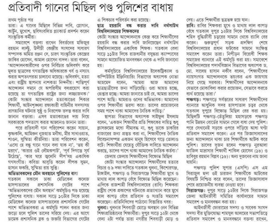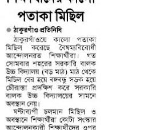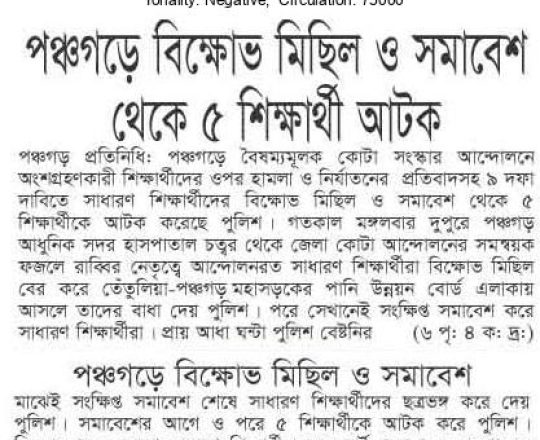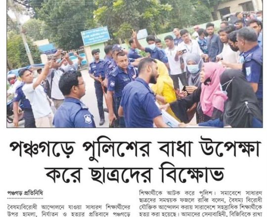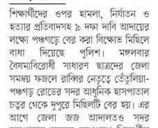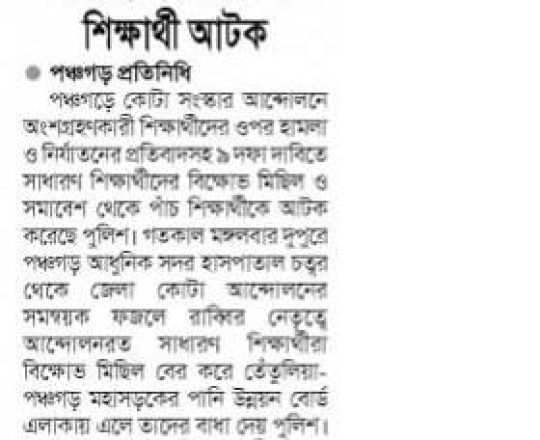 প্রথম আলো,৩১ জুলাই,পঞ্চগড়ে শিক্ষার্থীদের মিছিলে পুলিশের বাধা, পাঁচজনকে আটক করে জিজ্ঞাসাবাদ