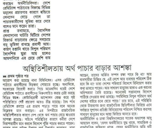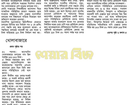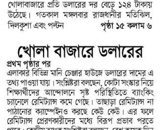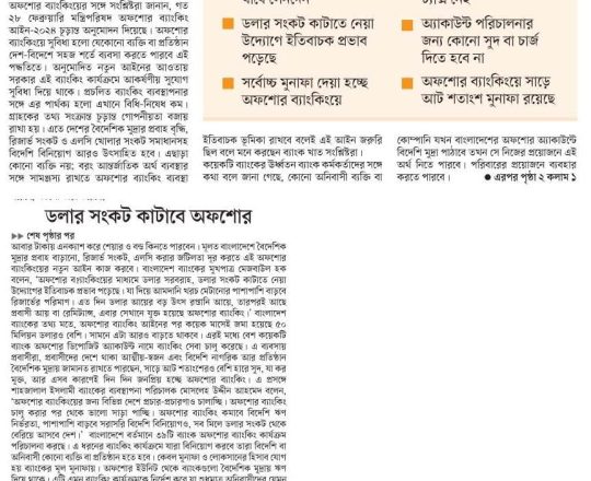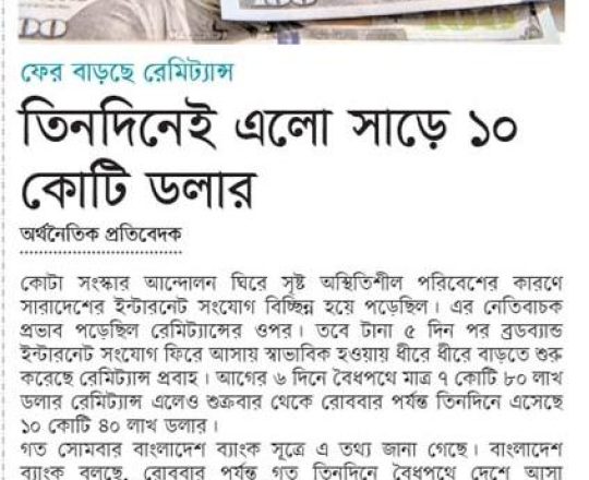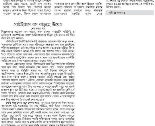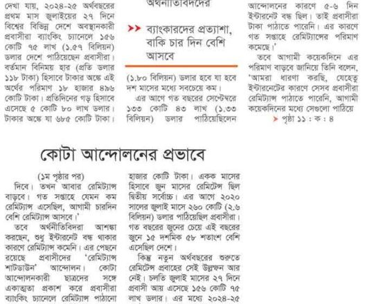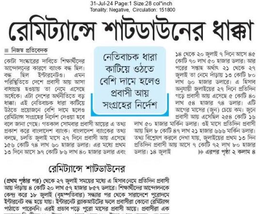 ভোরের পাতা, ৩১ জুলাই ২০২৪, রেমিট্যান্সে শাটডাউনের ধাক্কা