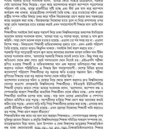 ভোরের আকাশ, ৩১ জুলাই ২০২৪, দু.সময় পার করছেন শিক্ষার্থীরা