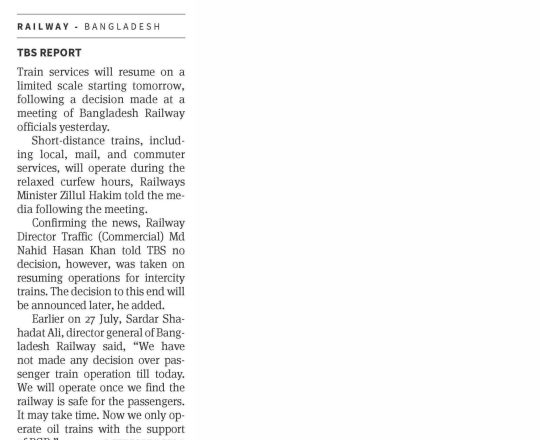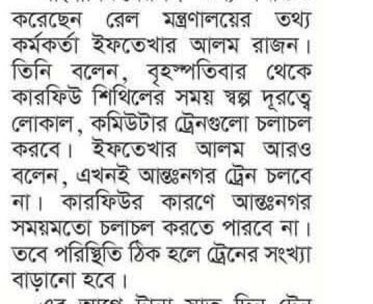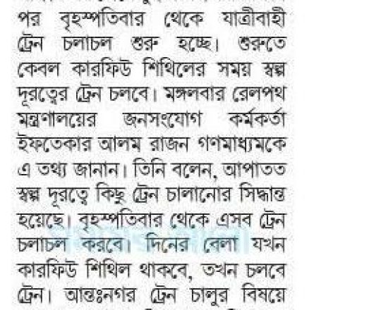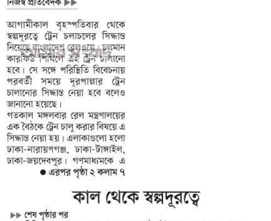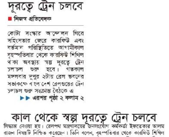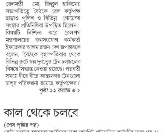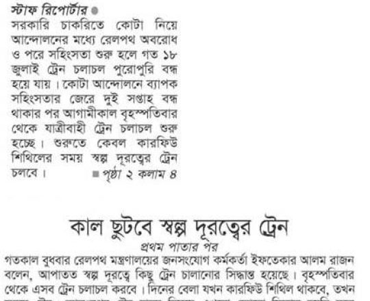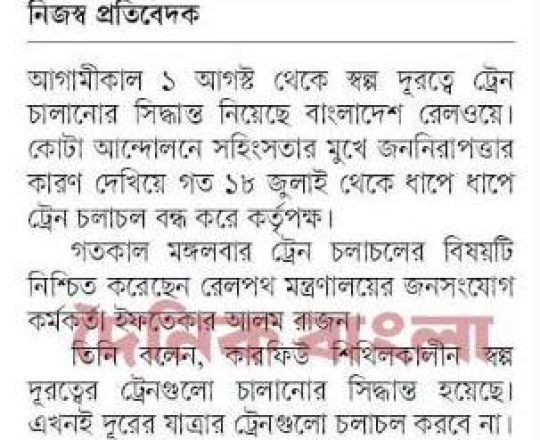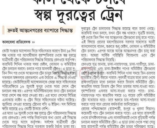 আলোকিত বাংলাদেশ, ৩১ জুলাই ২০২৪, কাল থেকে চলবে স্বল্প দূরত্বে ট্রেন