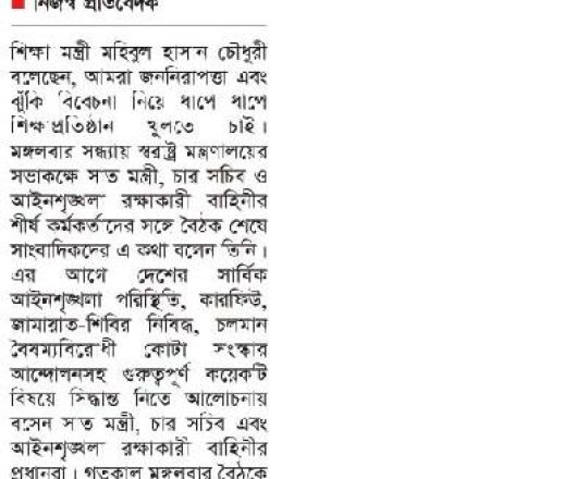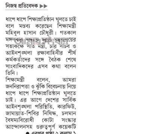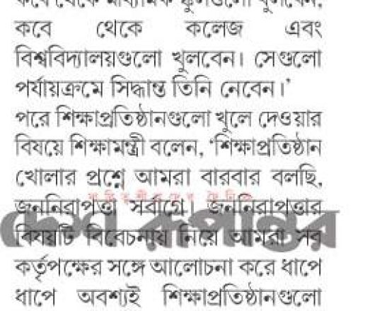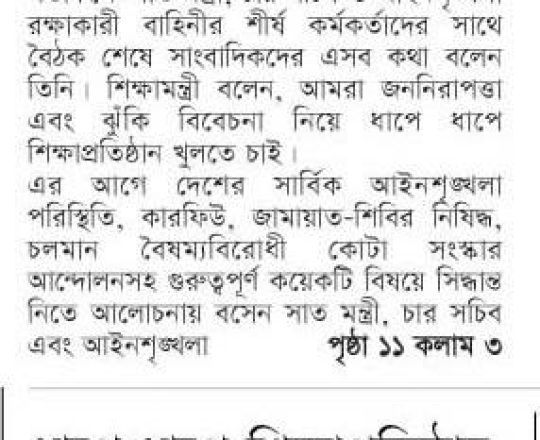 আজকালের খবর, ৩১ জুলাই ২০২৪, শিক্ষাপ্রতিষ্ঠান খুলবে ধাপে ধাপে-শিক্ষামন্ত্রী