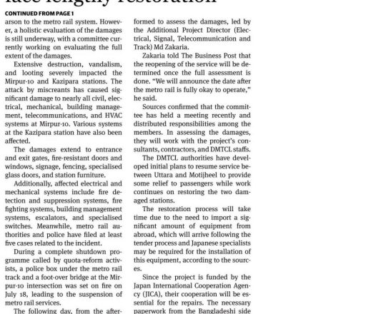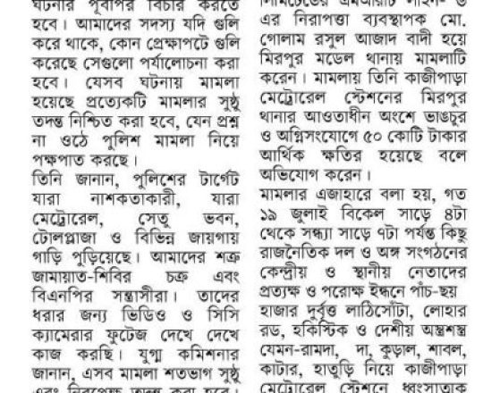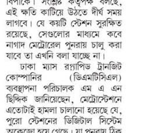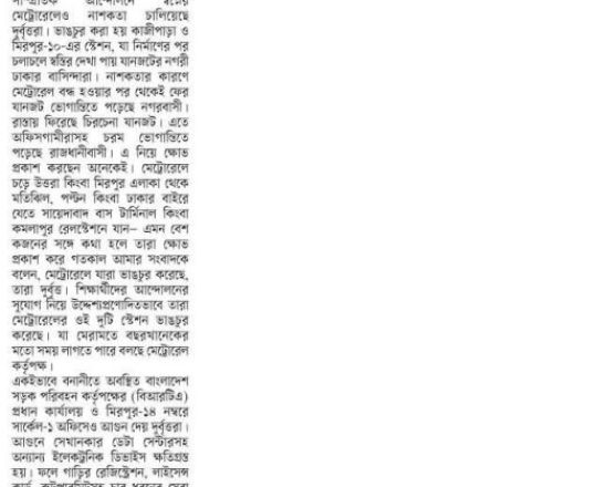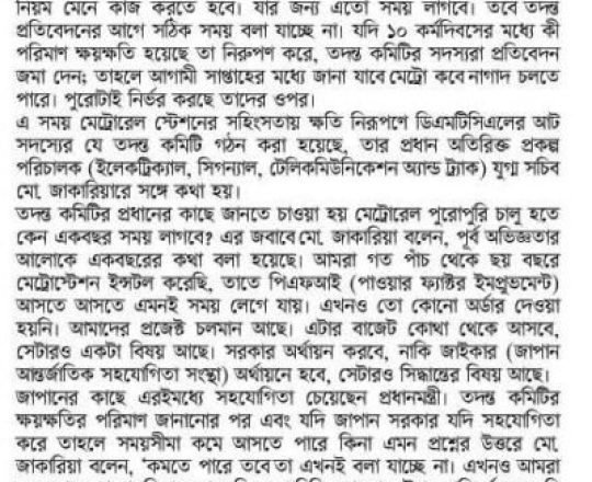 ভোরের পাতা, ৩১ জুলাই ২০২৪, মেট্রোরেল চালু হতে কত সময় লাগবে?