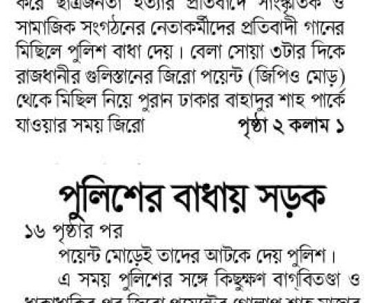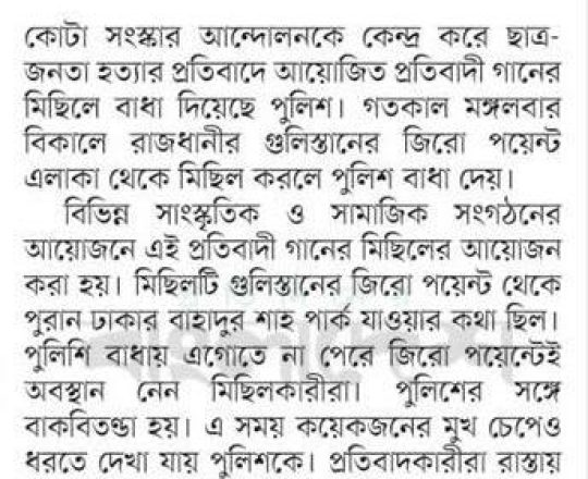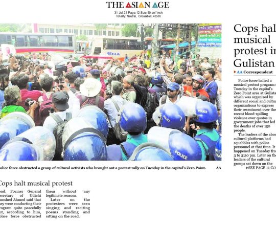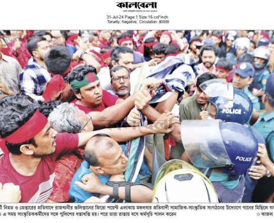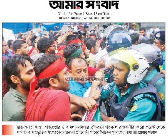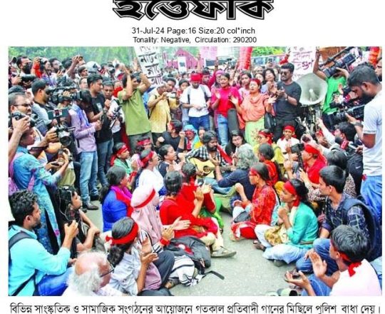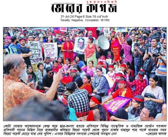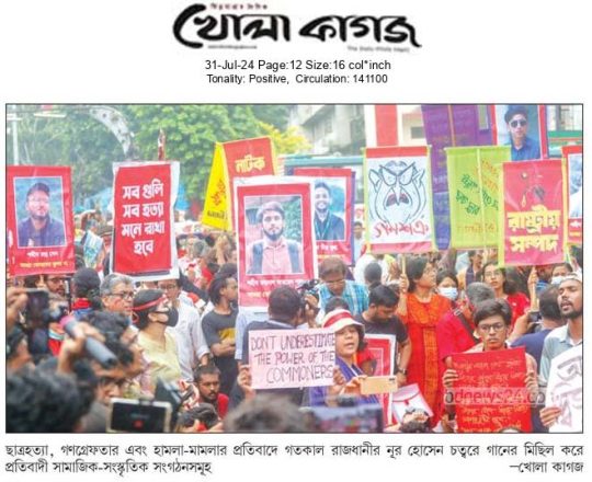 স্বদেশ প্রতিদিন, ৩১ জুলাই ২০২৪, গুলিস্তানে প্রতিবাদী গানের মিছিলে পুলিশের বাধা