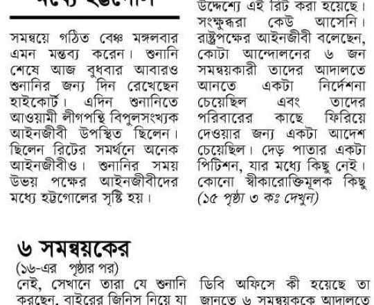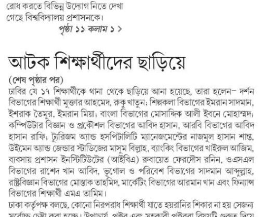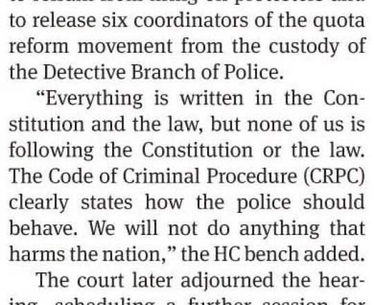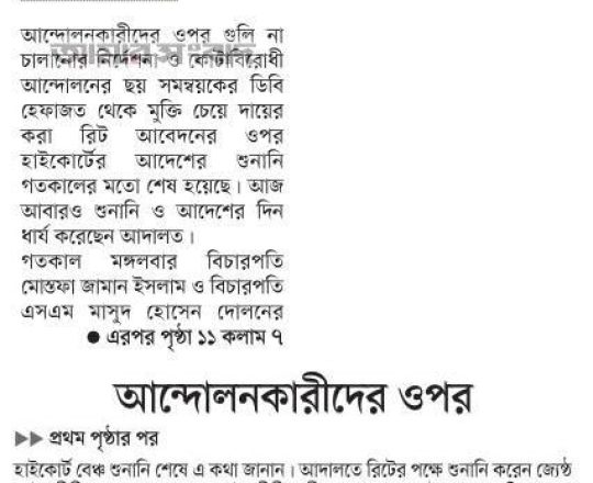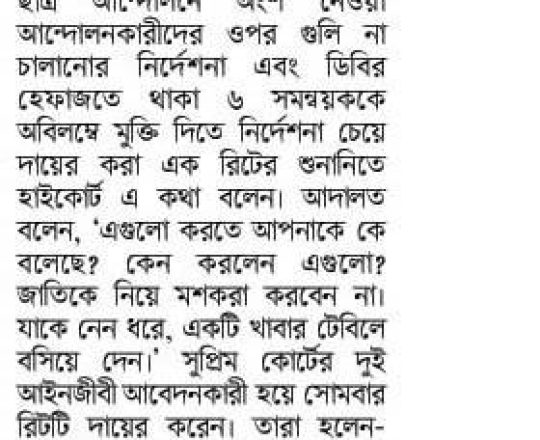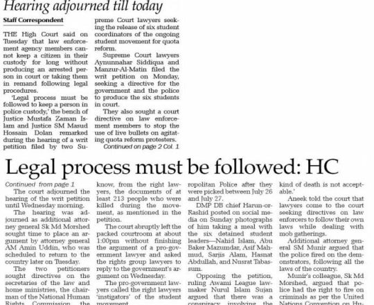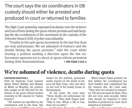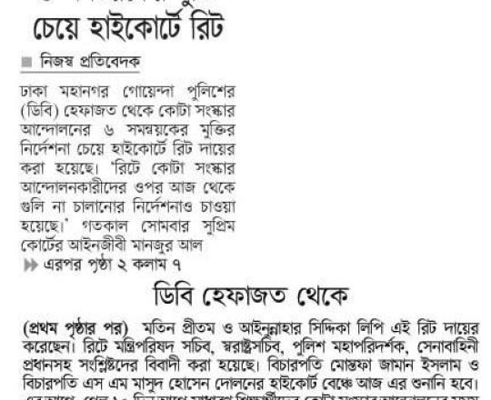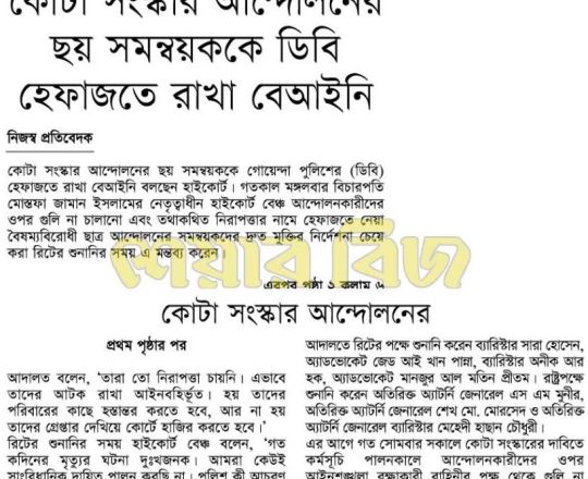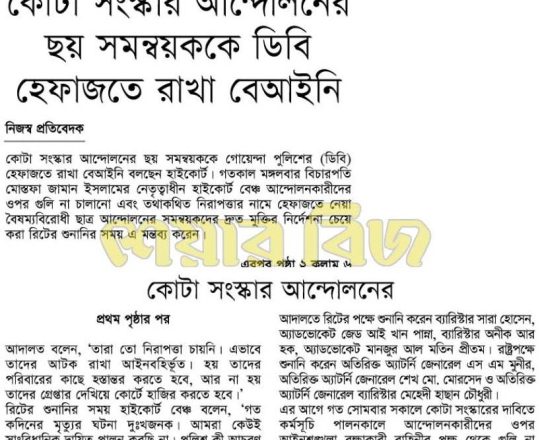 ভোরের পাতা, ৩১ জুলাই ২০২৪, ডিবি হেফাজত থেকে ৬ সমন্বয়কের মুক্তি চেয়ে হাইকোর্টে রিট