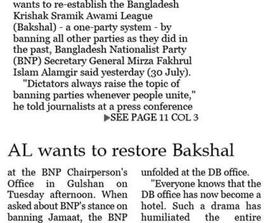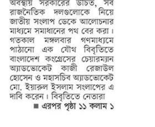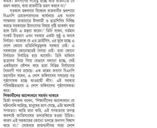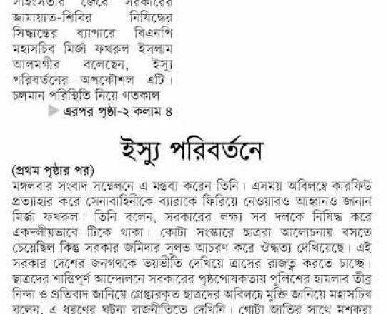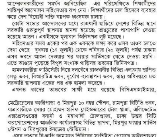 আলোকিত বাংলাদেশ, ৩১ জুলাই ২০২৪, অবিলম্বে কারফিউ প্রত্যাহার চায় বিএনপি