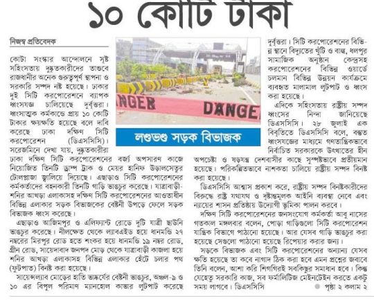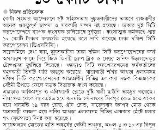 স্বদেশ প্রতিদিন, ৩১ জুলাই ২০২৪, ডিএসসিসির ক্ষতি ১০ কোটি টাকা