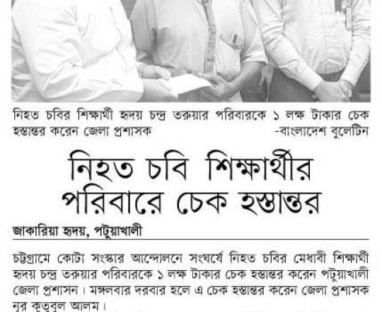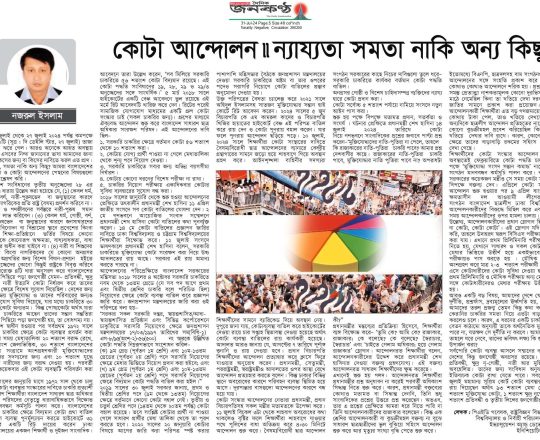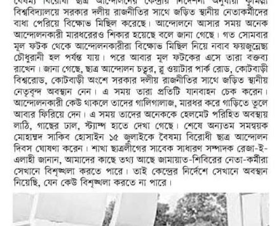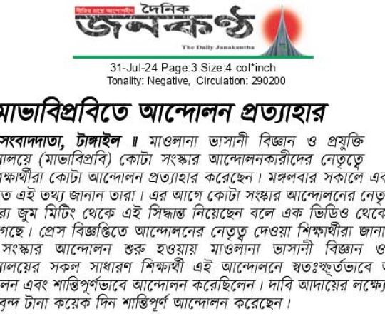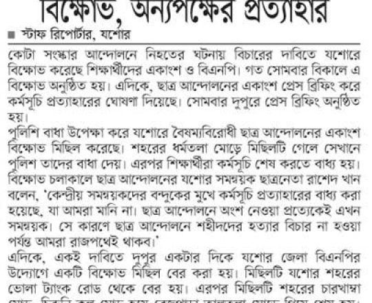 ভোরের পাতা, ৩১ জুলাই ২০২৪, যশোরে কোটা আন্দোলনের কর্মসূচি প্রত্যাহার