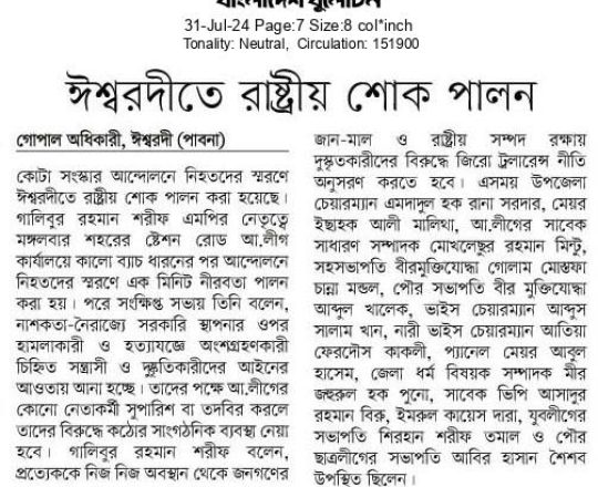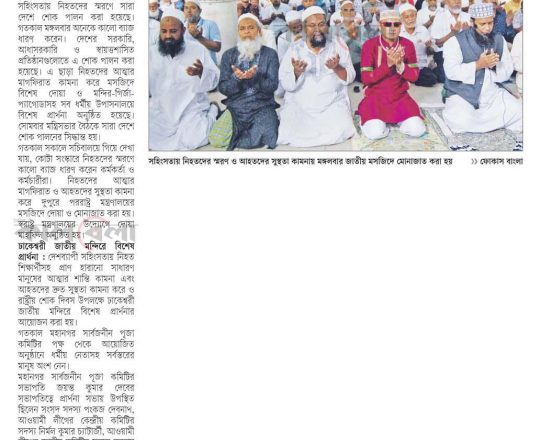 আজকালের খবর, ৩১ জুলাই ২০২৪, সহিংসতায় নিহতদের স্মরণে দেশব্যাপী শোক পালিত