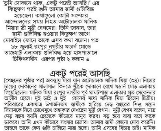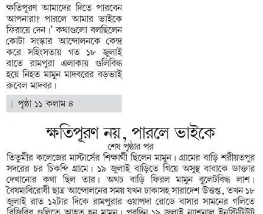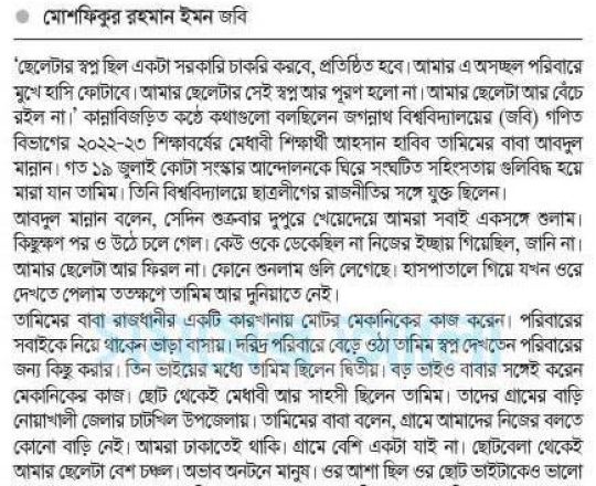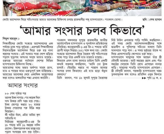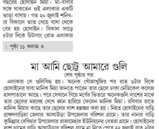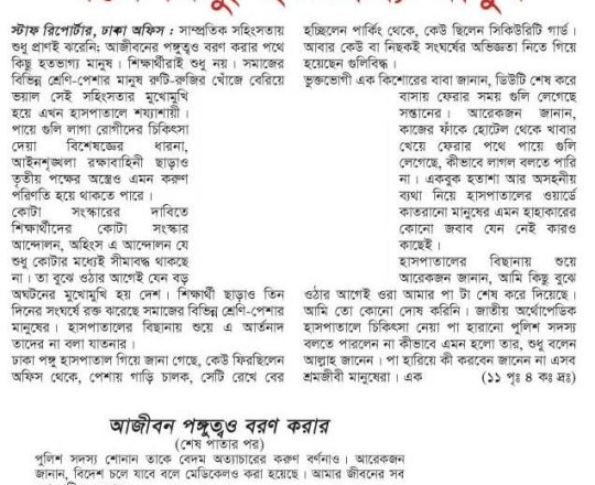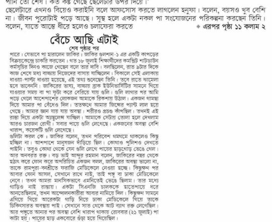ভোরের পাতা, ৩১ জুলাই ২০২৪, 'এক বুলেটে আমার সব শেষ হয়ে গেল'