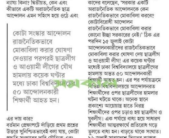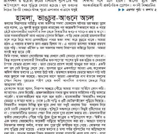 ভোরের পাতা, ৩১ জুলাই ২০২৪, নির্দলীয় বলে কেন ধ্বংসযজ্ঞের সুযোগ করে দেওয়া হলো?