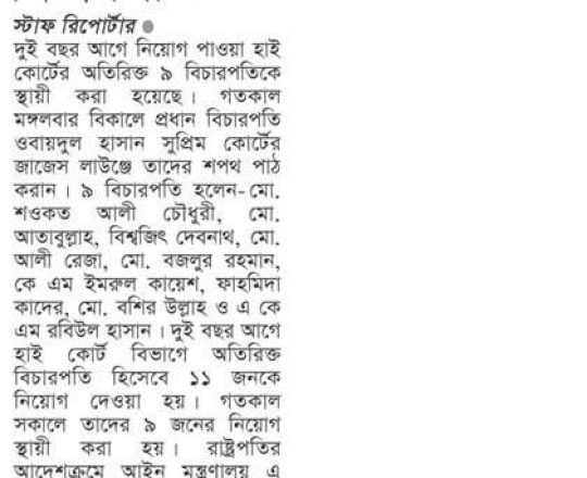 আজকের পত্রিকা, ৩১ জুলাই ২০২৪, শপথ নিলেন হাইকোর্টের ৯ বিচারপতি