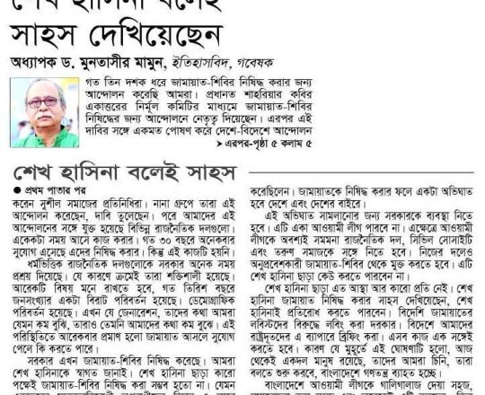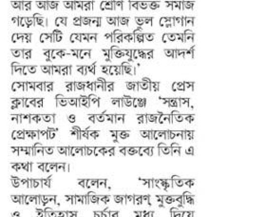 আজকালের খবর, ৩১ জুলাই ২০২৪, মুক্তিযুদ্ধের চেতনাকে সমুন্নত রাখতে হবে-ড. নিয়াজ আহম্মেদ