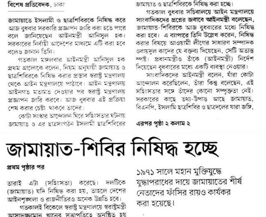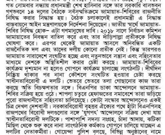 আজকালের খবর, ৩১ জুলাই ২০২৪, জামায়াত-শিবির নিষিদ্ধ হচ্ছে