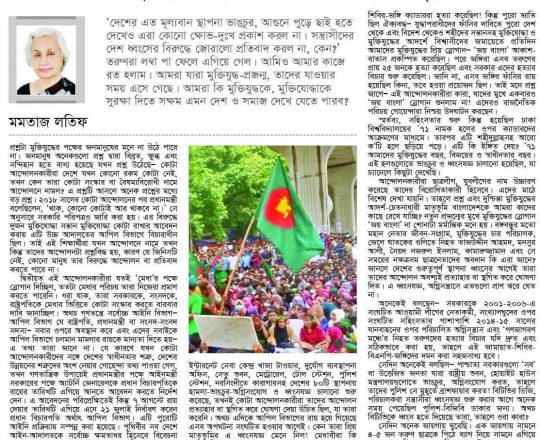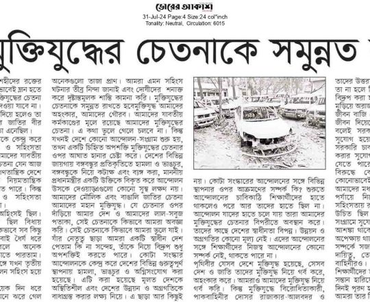 ভোরের আকাশ, ৩১ জুলাই ২০২৪, মুক্তিযুদ্ধের চেতনাকে সমুন্নত রাখতে হবে