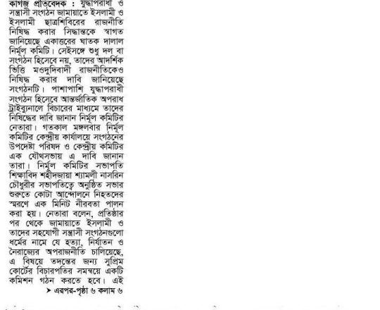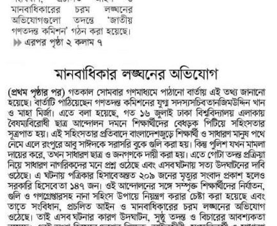 ভোরের পাতা, ৩১ জুলাই ২০২৪, মানবাধিকার লঙ্ঘনের অভিযোগ তদন্তে 'জাতীয় গণতদন্ত কমিশন'