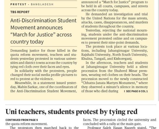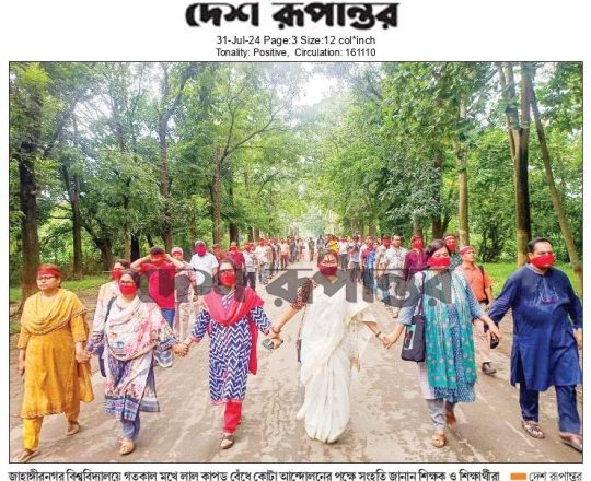 স্বদেশ প্রতিদিন, ৩১ জুলাই ২০২৪, লাল কাপড় মুখে বেঁধে রাস্তায় শিক্ষক-শিক্ষার্থী
