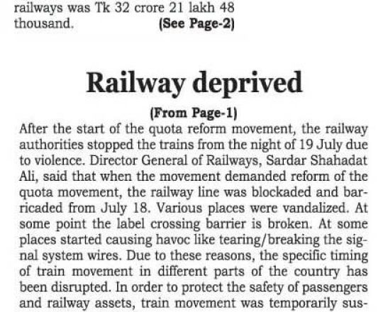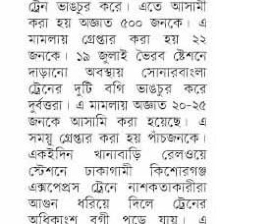 স্বদেশ প্রতিদিন, ৩১ জুলাই ২০২৪, ভৈরবে ট্রেন ভাঙচুর ও অগ্নিসংযোগের ঘটনায় গ্রেপ্তার ৩৭