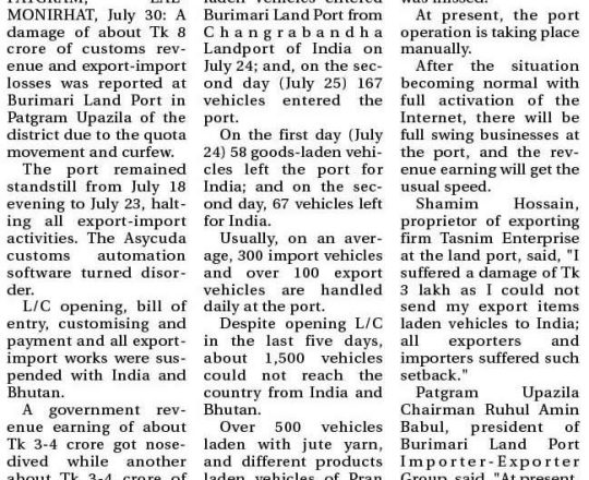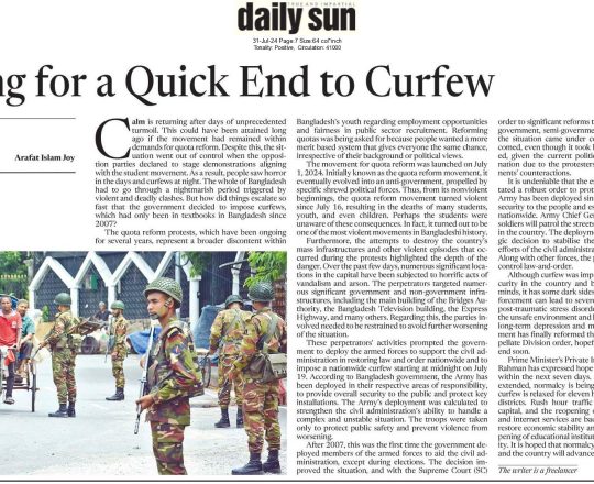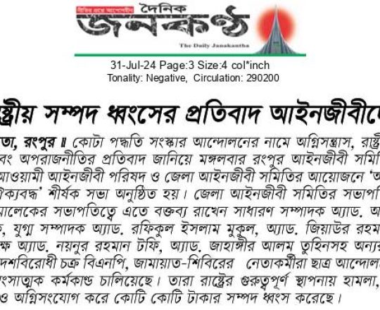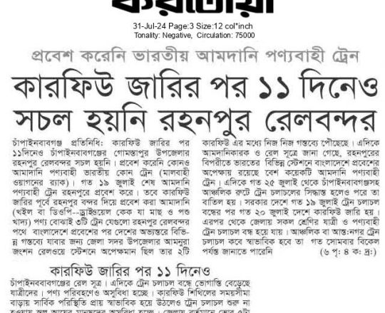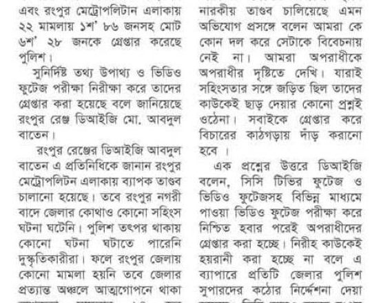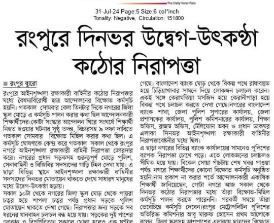 ভোরের পাতা, ৩১ জুলাই ২০২৪, রংপুরে দিনভর উদ্বেগ-উৎকণ্ঠা কঠোর নিরাপত্তা