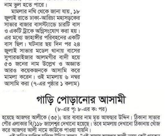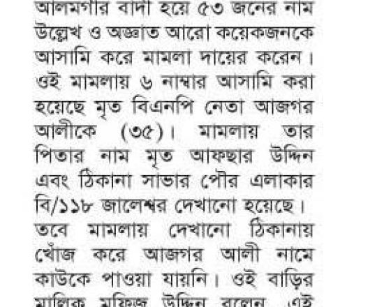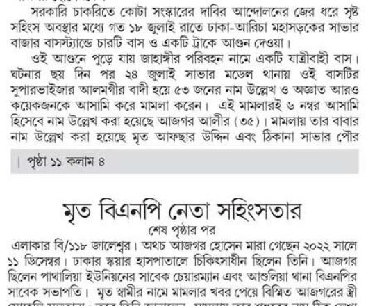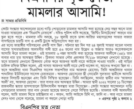 ভোরের আকাশ, ৩১ জুলাই ২০২৪, বিএনপির মৃত নেতা মামলার আসামি!