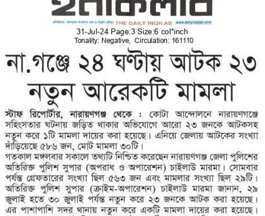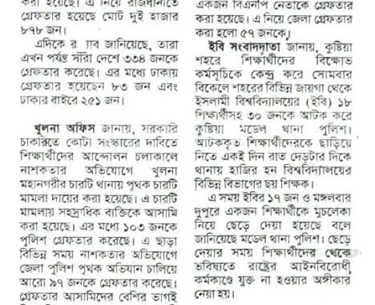 ভোরের আকাশ, ৩১ জুলাই ২০২৪, ডিবিতে আটকৃতদের ২৪ ঘণ্টার মধ্যে মুক্তি দেওয়ার আলটিমেটাম
