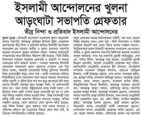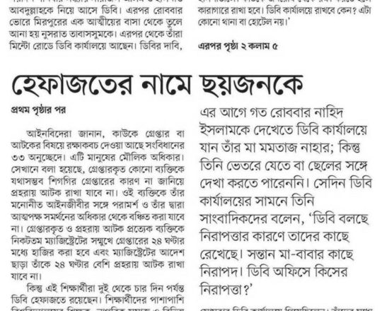 প্রথম আলো,৩১ জুলাই,হেফাজতের নামে ছয় সমন্বয়ককে আটকে রাখা নিয়ে প্রশ্ন