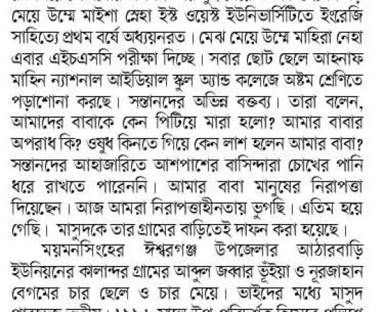ভোরের আকাশ, ৩১ জুলাই ২০২৪, পুলিশ পরিদর্শক মাসুদের শরীরজুড়ে কোপের চিহ্ন