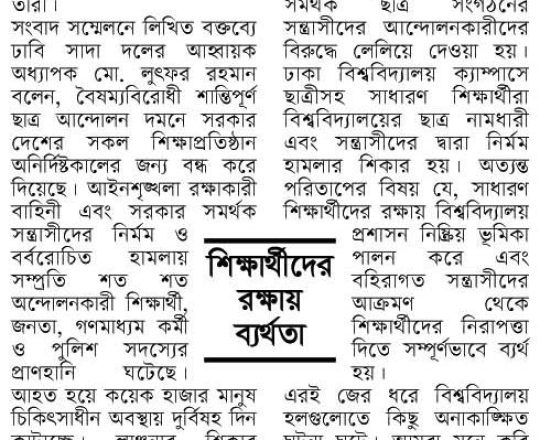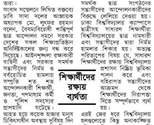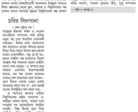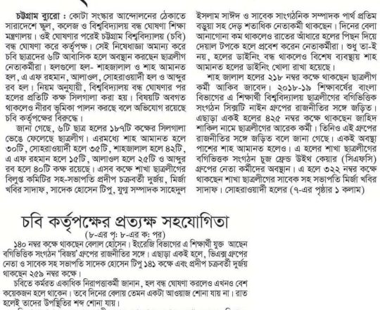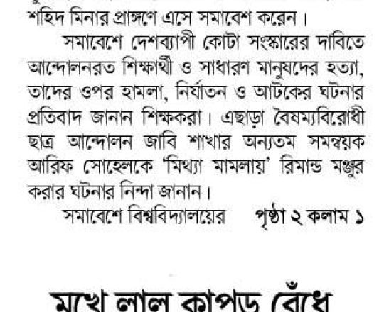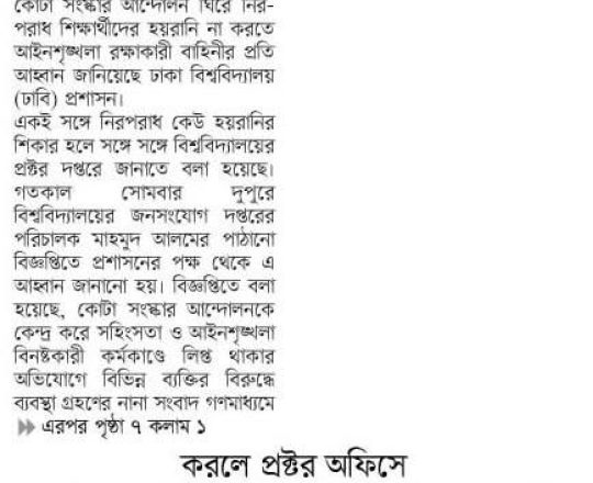 ভোরের পাতা, ৩১ জুলাই ২০২৪, করলে প্রক্টর অফিসে জানানোর আহ্বান প্রতিনিধি, ঢাবি