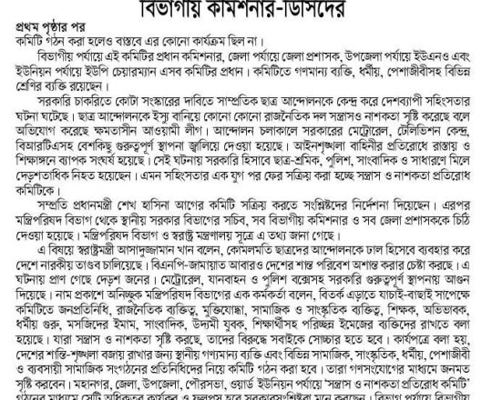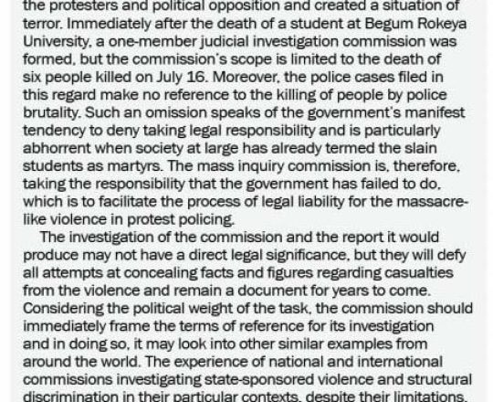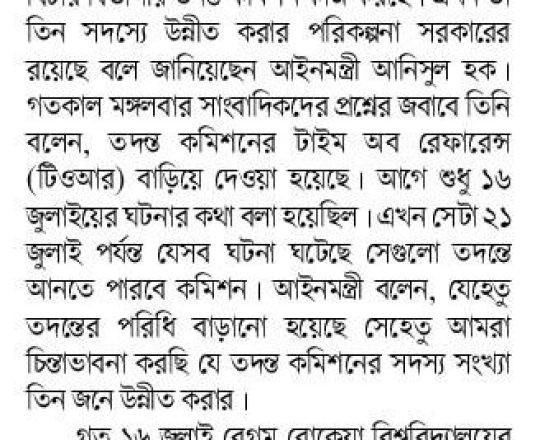 প্রথম আলো,৩১ জুলাই,সরকার গঠিত তদন্ত কমিশনের পরিধি ও সদস্যসংখ্যা বাড়ছে