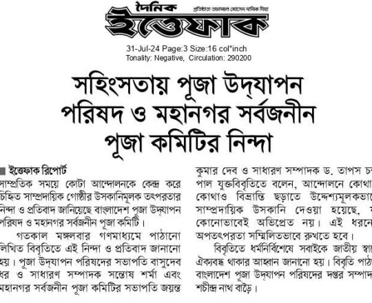 ভোরের পাতা, ৩১ জুলাই ২০২৪, ফের বিক্ষোভকারীদের উত্তেজনা
