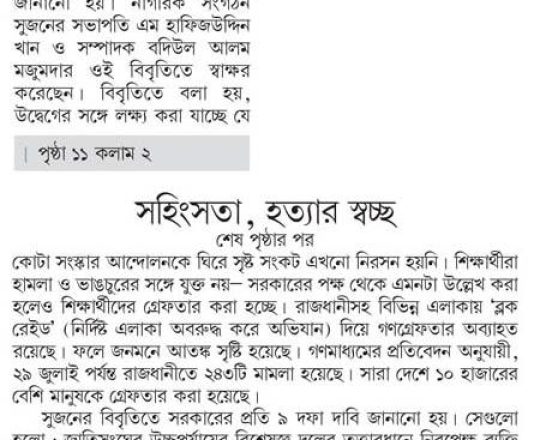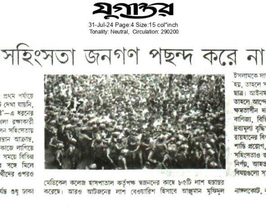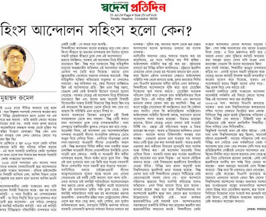 স্বদেশ প্রতিদিন, ৩১ জুলাই ২০২৪, অহিংস আন্দোলন সহিংস হলো কেন?