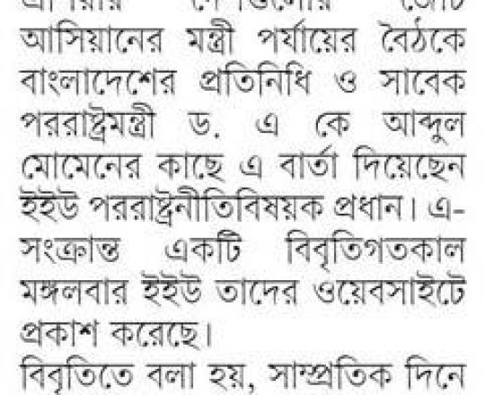 প্রথম আলো,৩১ জুলাই,ব্যংলাদেশের বিরাজমান পরিস্থিতিতে অংশীদারত্ব চুক্তির আলোচনা স্থগিত করেছে ইইউ