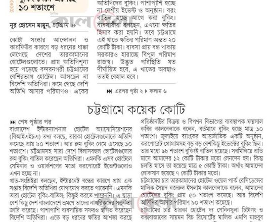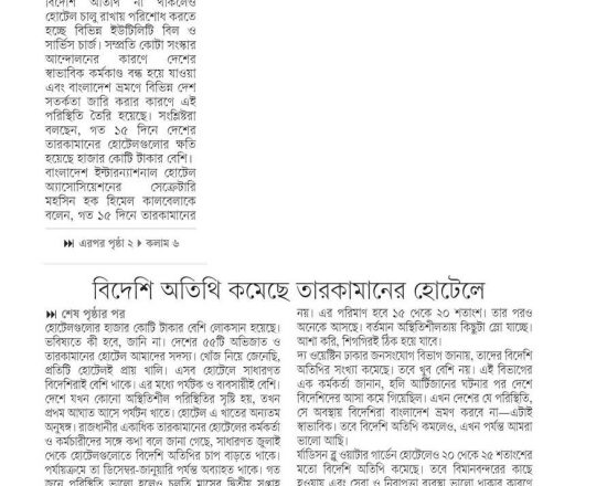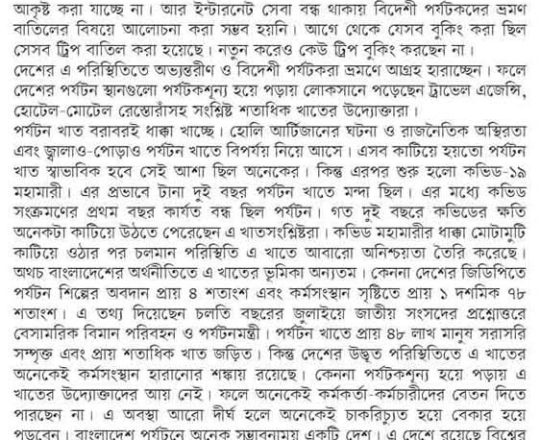 ভোরের আকাশ, ৩১ জুলাই ২০২৪, পর্যটন খাতে দীর্ঘমেয়াদি প্রভাব পড়বে