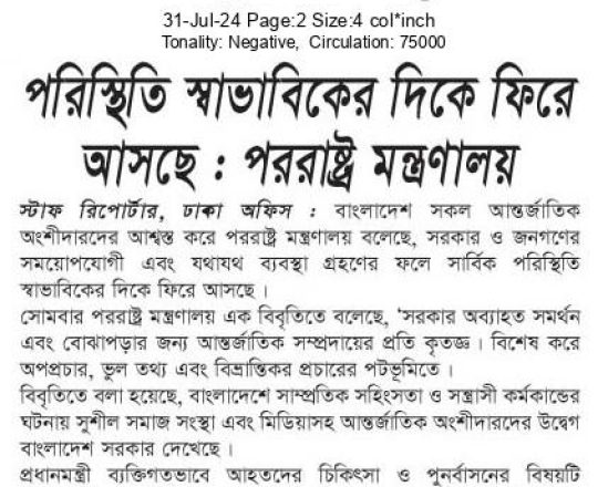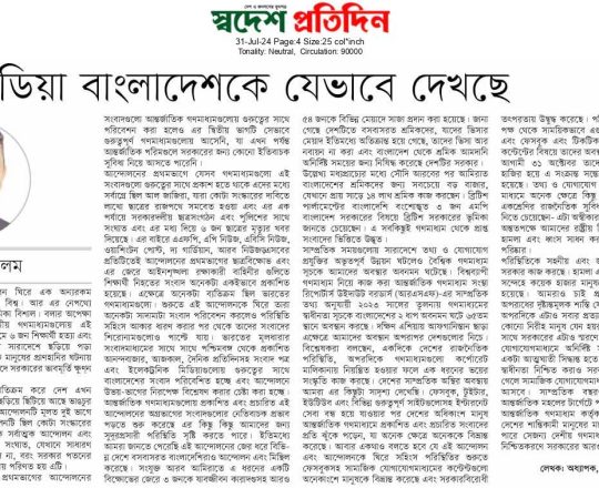 স্বদেশ প্রতিদিন, ৩১ জুলাই ২০২৪, বিশ্বমিডিয়া বাংলাদেশকে যেভাবে দেখছে